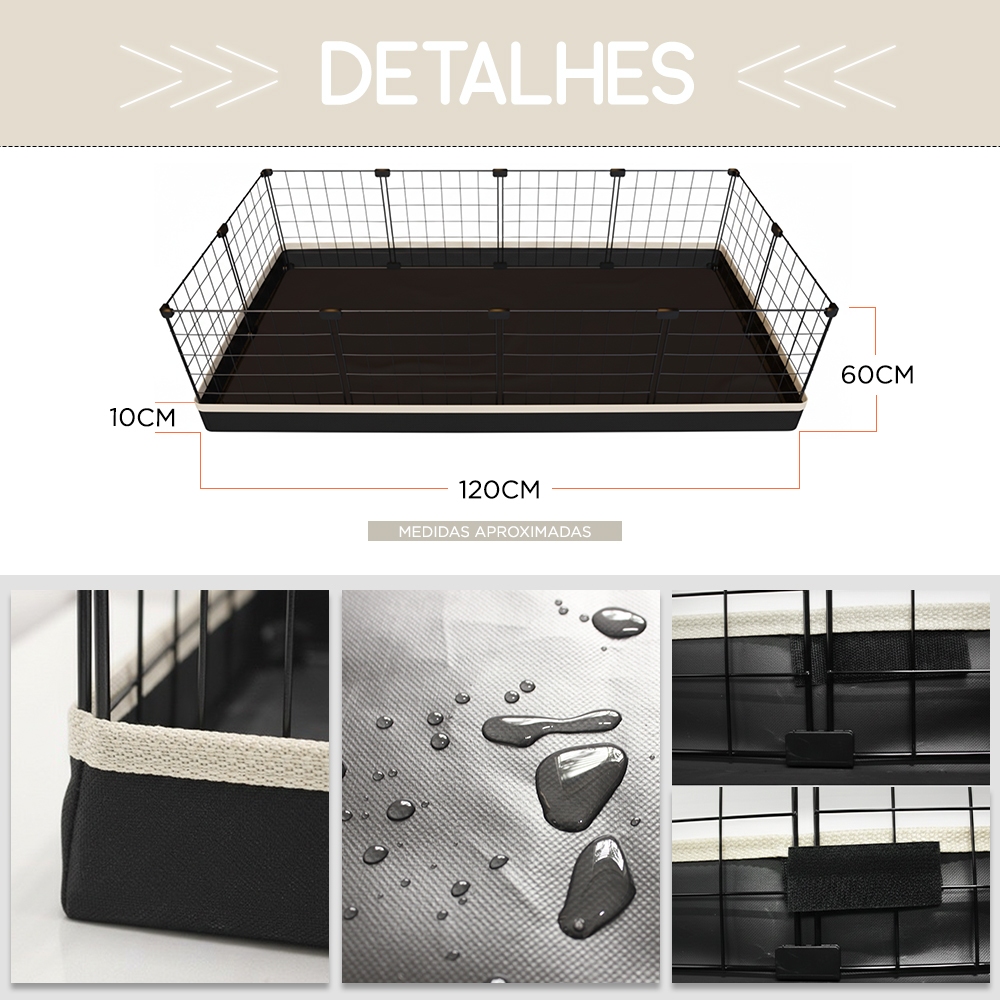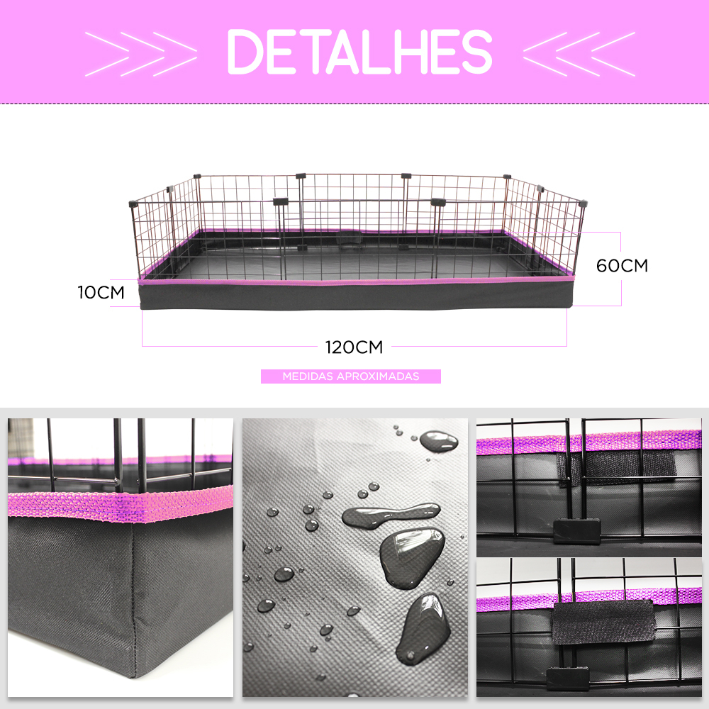Porquinho da Índia Cercado Pet com Bandeja Higiênica Impermeável 60x120cm