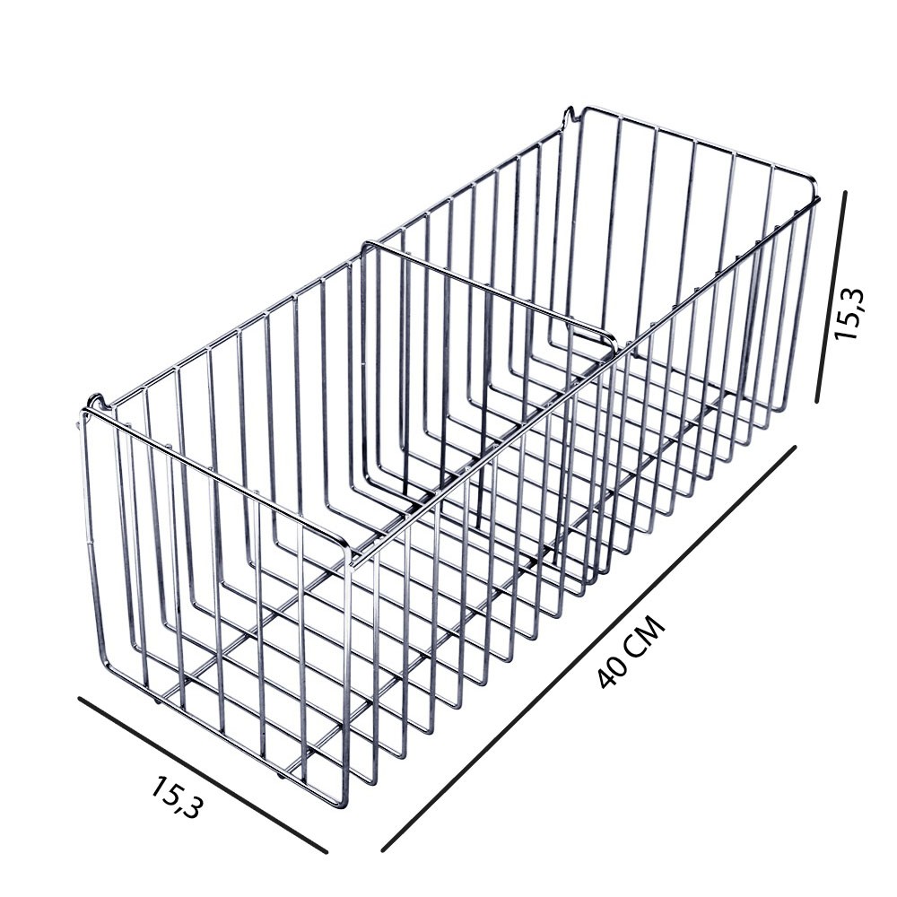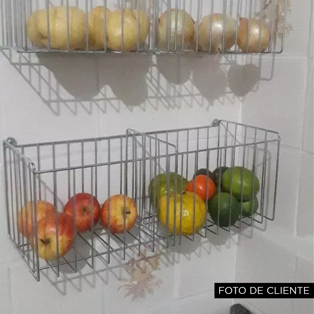 Cesto Multiuso Organizador 40cm com Divisória Aramado Fruteira de Parede Modelo N05
