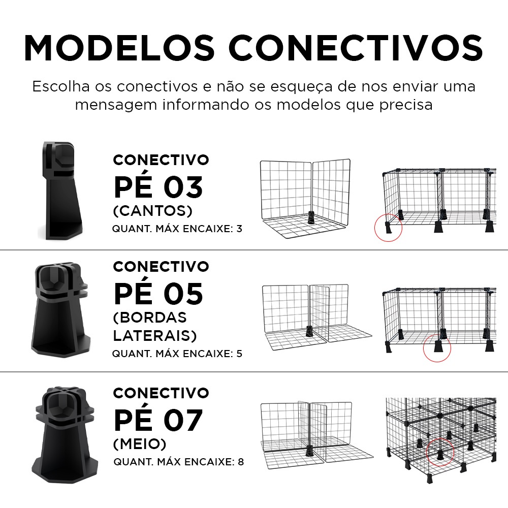 Kit Conectivo Pé Conector Tipo Pezinho para Estante Aramada Cercado Pet Balcao de Vidro 4mm
