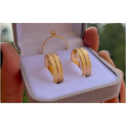 Par de Alianças Banho Moeda Antiga Diamantada 6mm + Anel Solitário (COD-100)