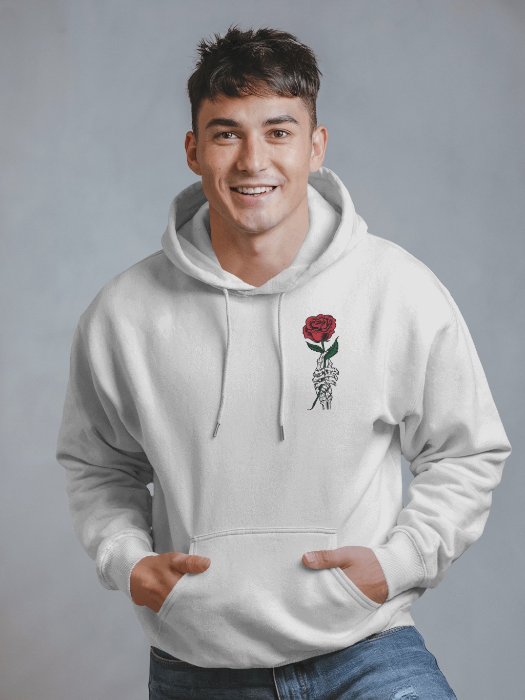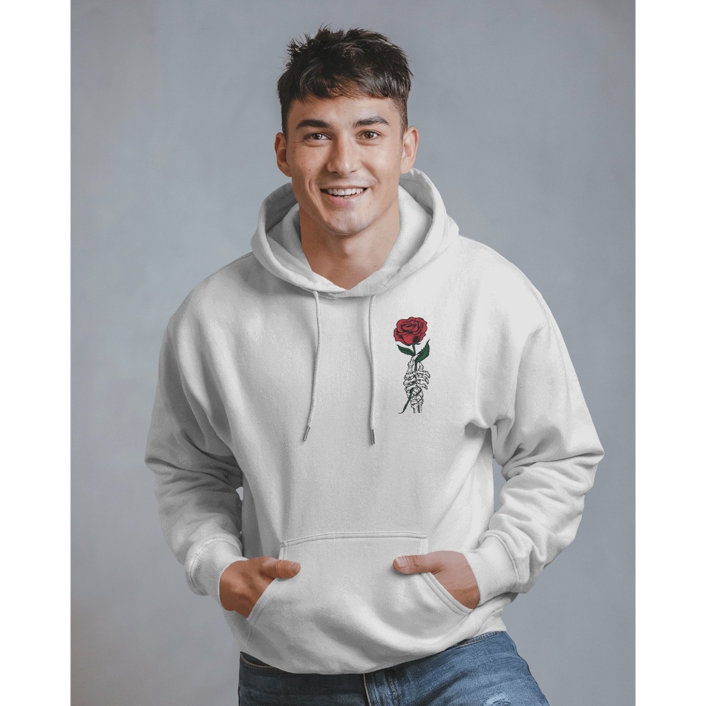 Moletom Masculino Blusa de Frio Casaco Canguru Com Capuz Flor Caveira Inverno Feminino Flanelado
