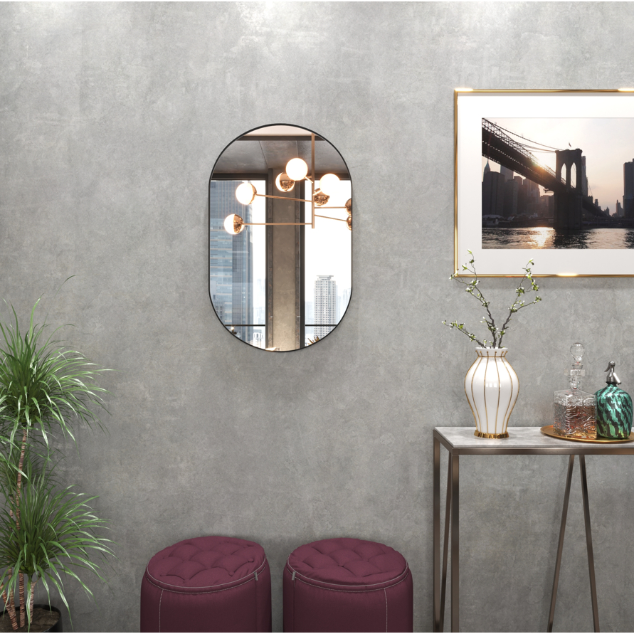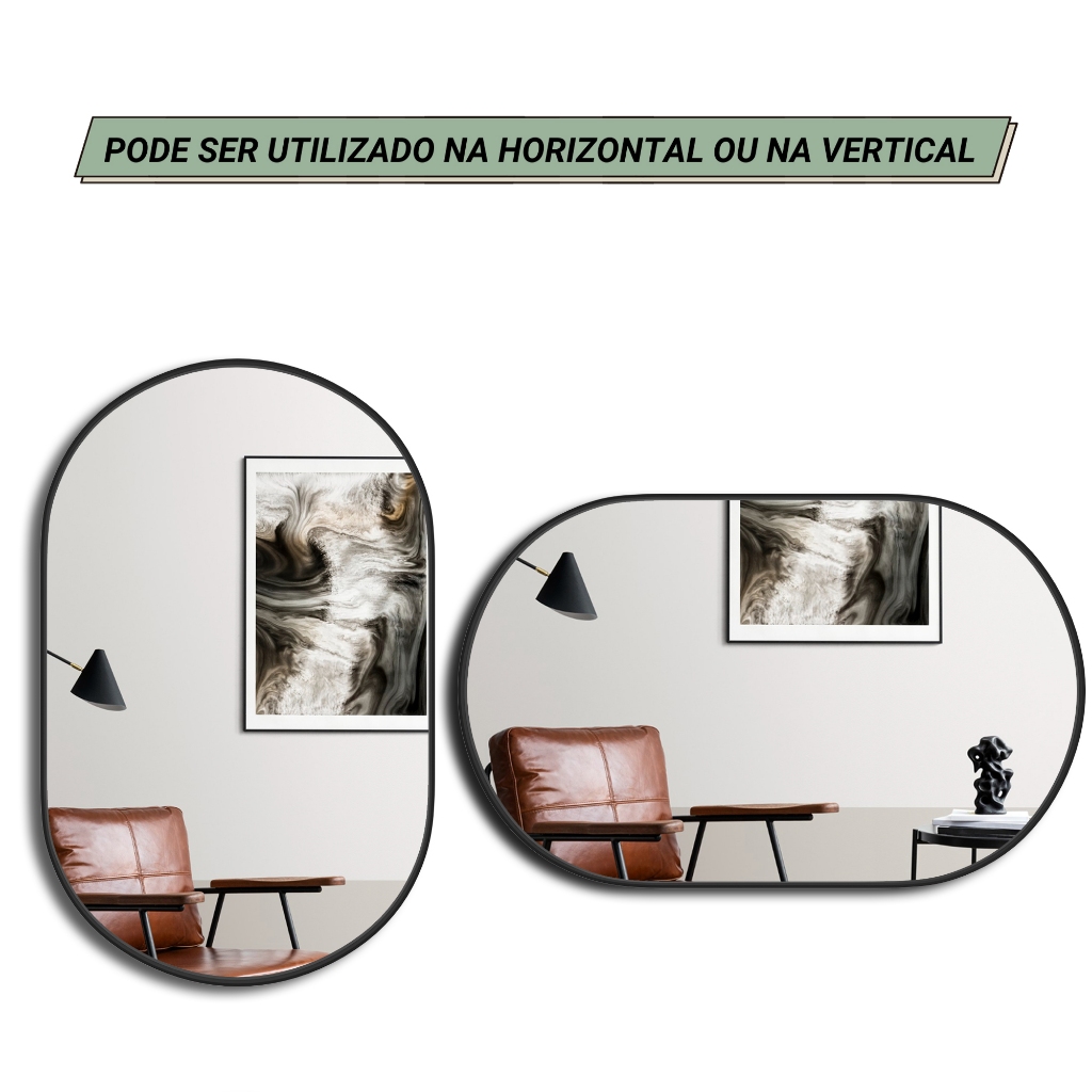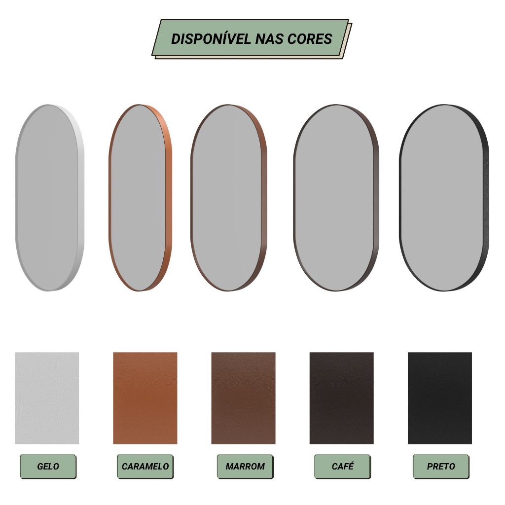 Kit 2 Espelhos Oval Com Borda em Couro + Suporte Decorativo Quarto Sala Banheiro