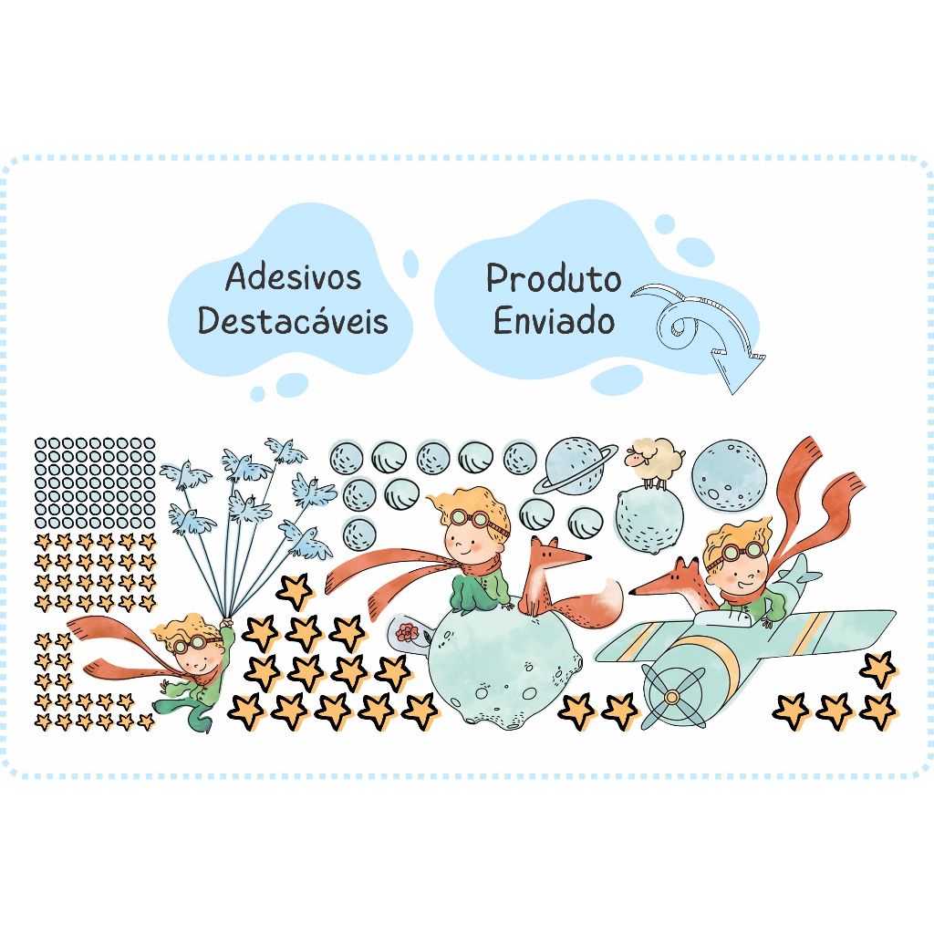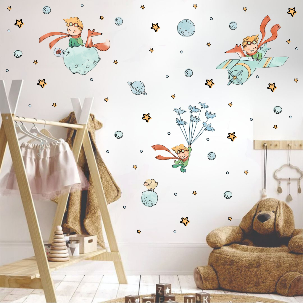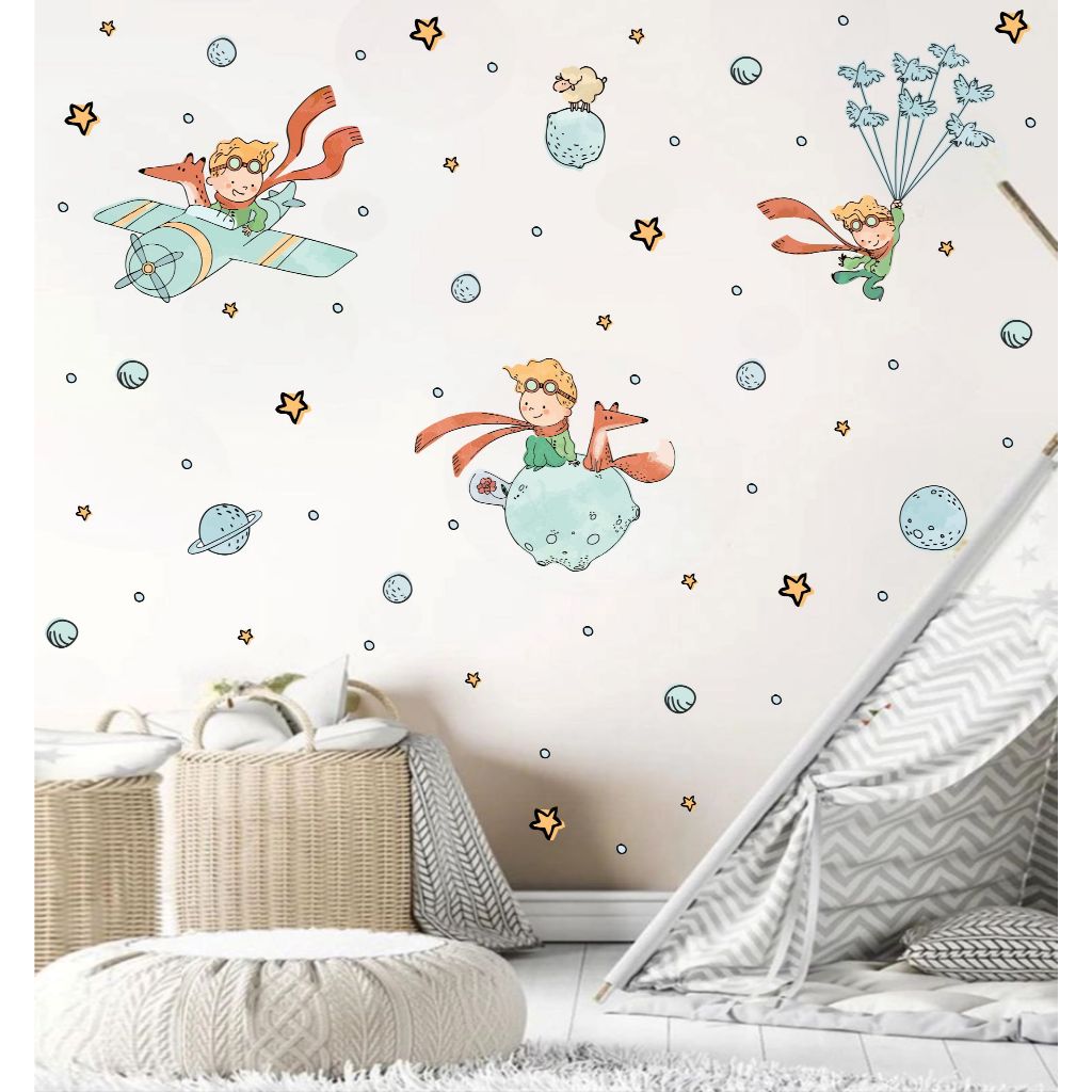 Adesivo de Parede Mundo Pequeno Príncipe Aviador Lua Avião