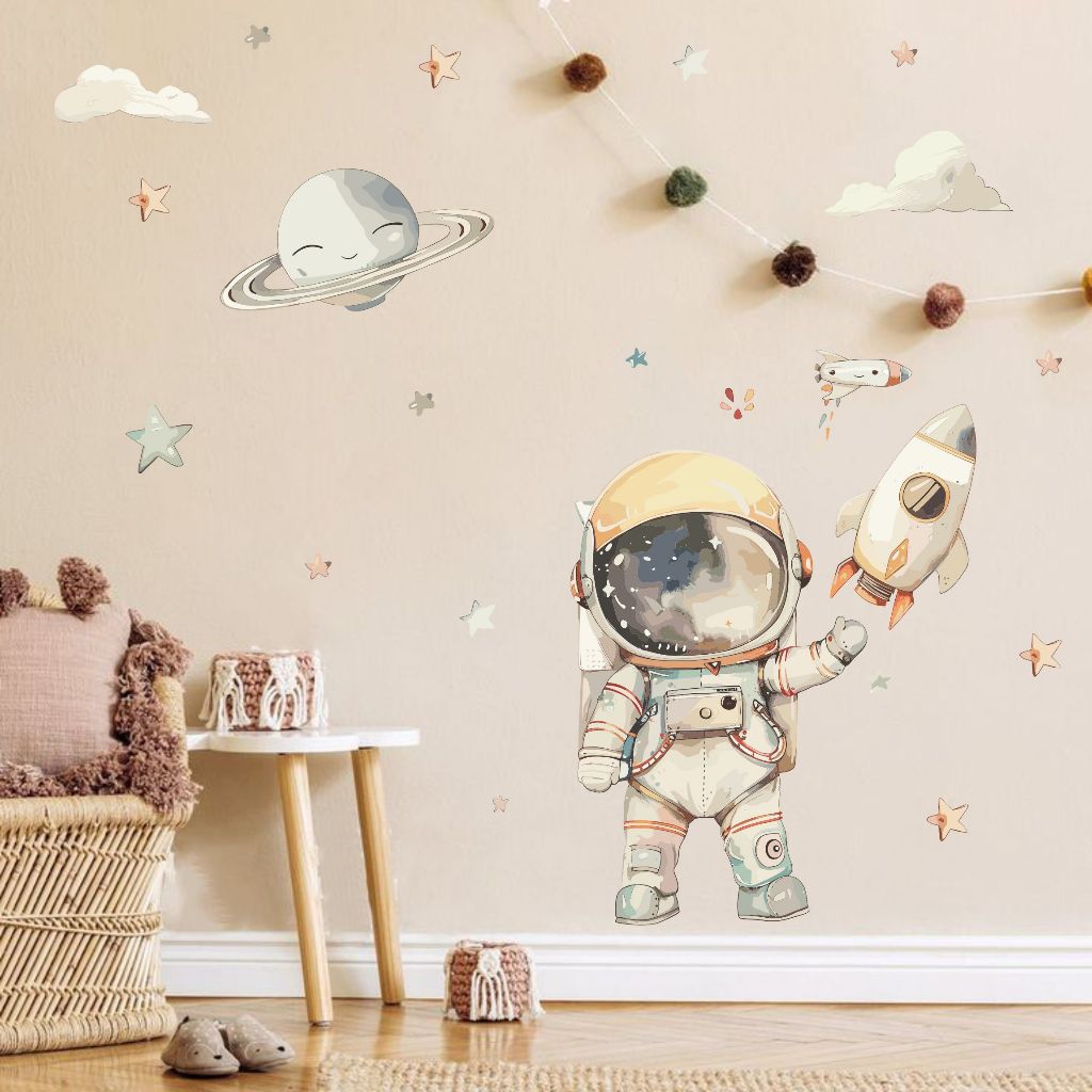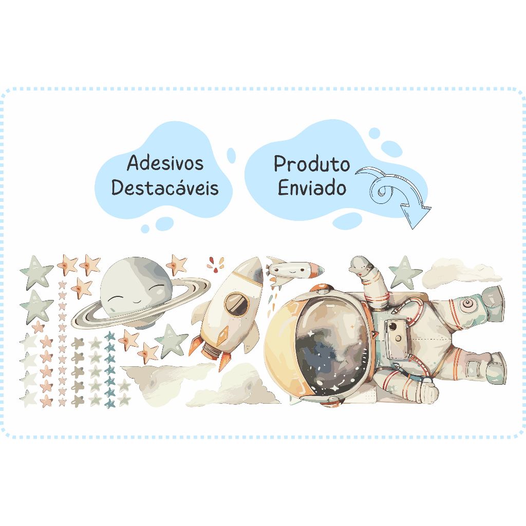 Adesivo de Parede Astronauta Aquarela Foguete estrelas
