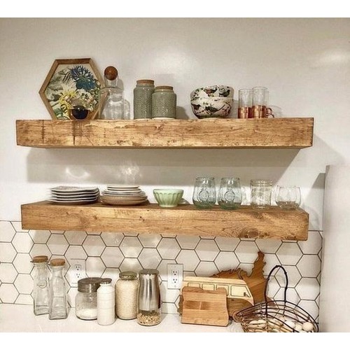 Kit 2 Prateleiras Grossas Suporte Invisível Madeira 60x15