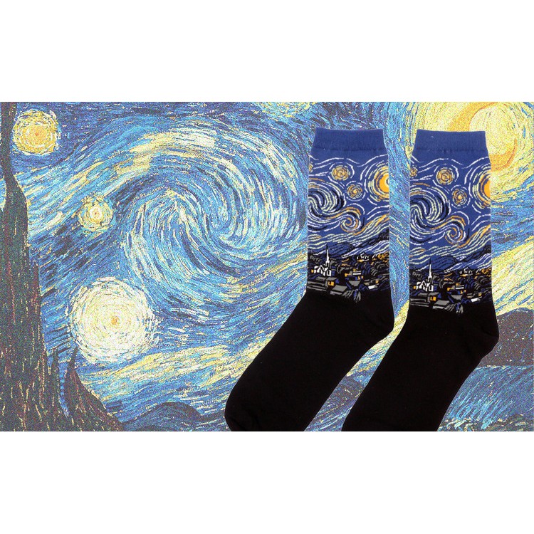 Quente Outono Inverno Retro Feminino Nova Arte Van Gogh Mural World Famoso Pintura A Óleo Série Feminina Meias Engraçadas