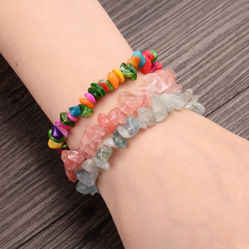Pulseira De Contas De Pedra Natural Para Mulheres , Homens , Casal , Cristal Irregular , Água-Marinha , Turquesa , Casca