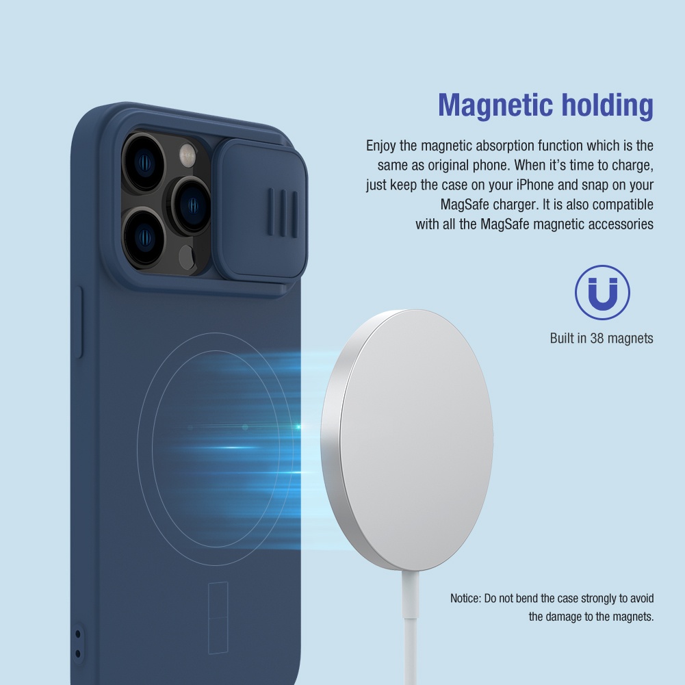 Nillkin Capa Magnética CamShield Silky Para iPhone 14 Pro Max Traseira De Silicone Líquido Anti-Impacto