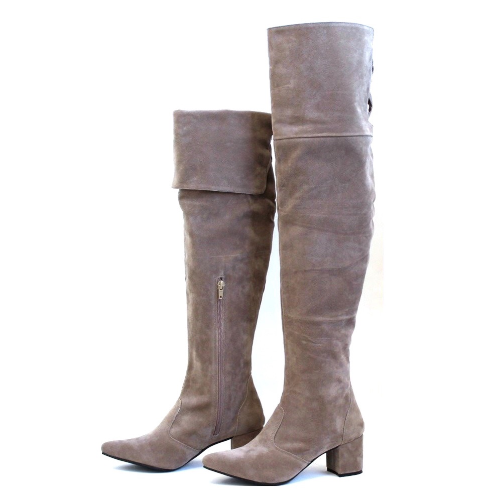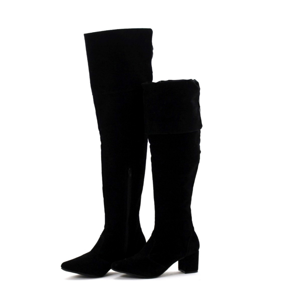 Bota Over Knee Camurça Cano Alto Longo 60 cm Bico Fino Salto 6cm Médio Baixo 33 AO 42