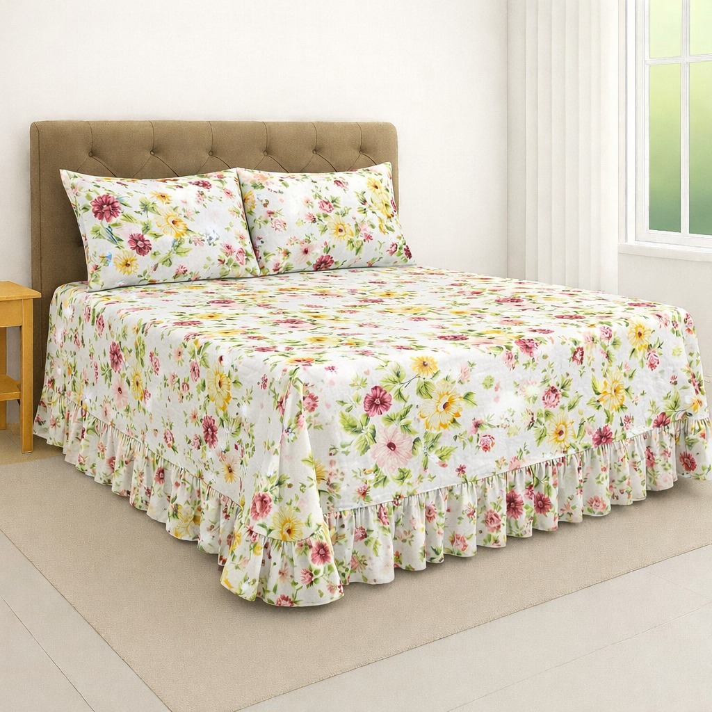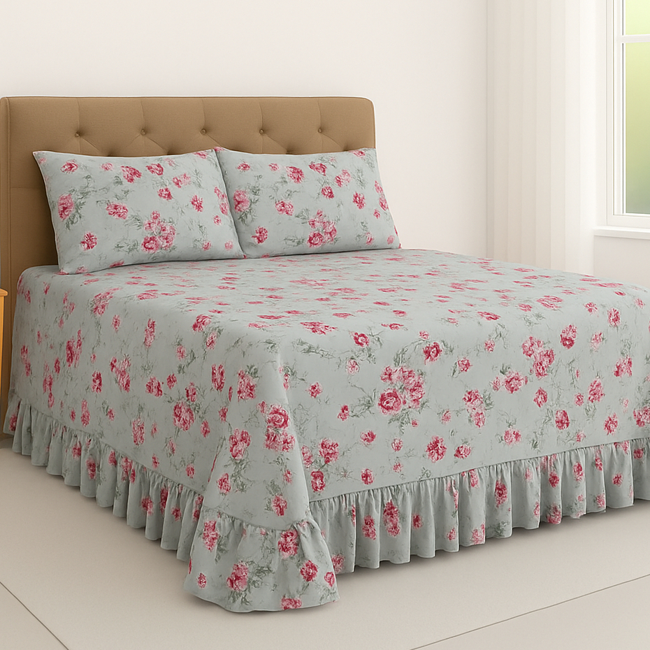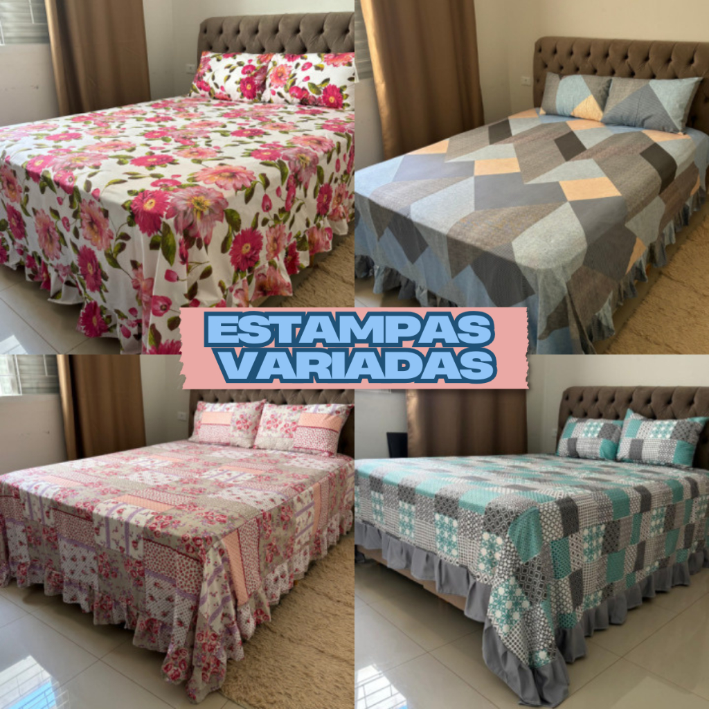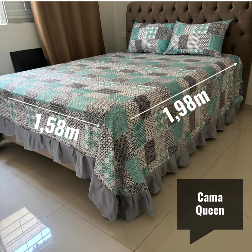 Colcha Queen Casal Solteiro Helena Com Babado + Porta Travesseiro Micropercal Luxo