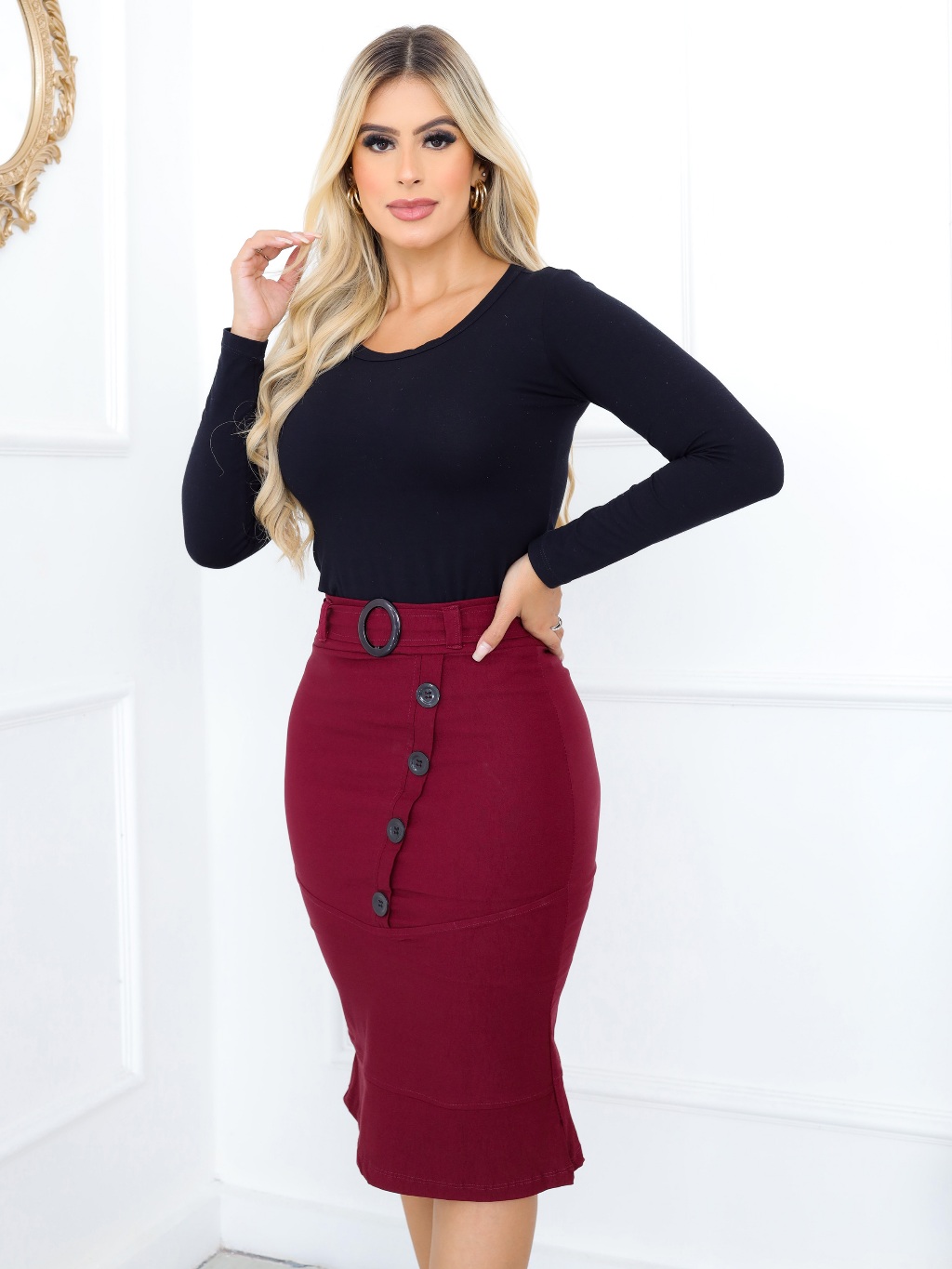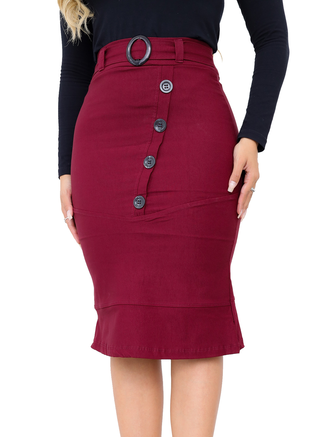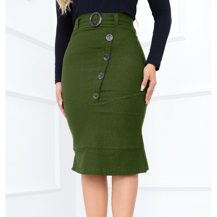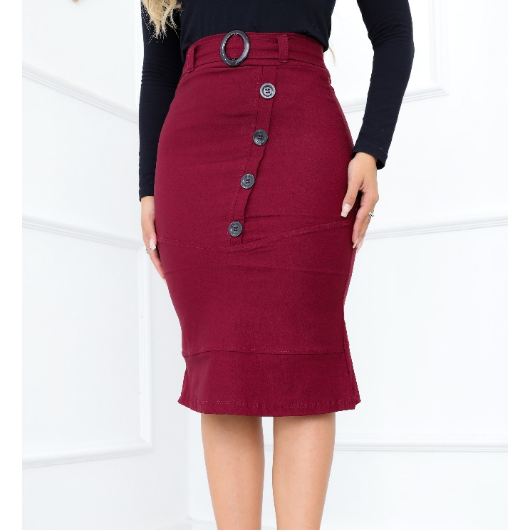 Saia Luxuosa Corte Moderno Botões Diagonal e Fivela