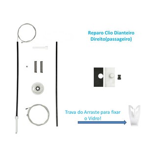 kit Reparo Máquina Vidro Elétrico Original Renault Clio Direito + arraste e trava 075, 10120, 10316