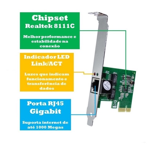 Placa De Rede Pci-e Gigabit 10/100/1000 Mbps Rtl8111c