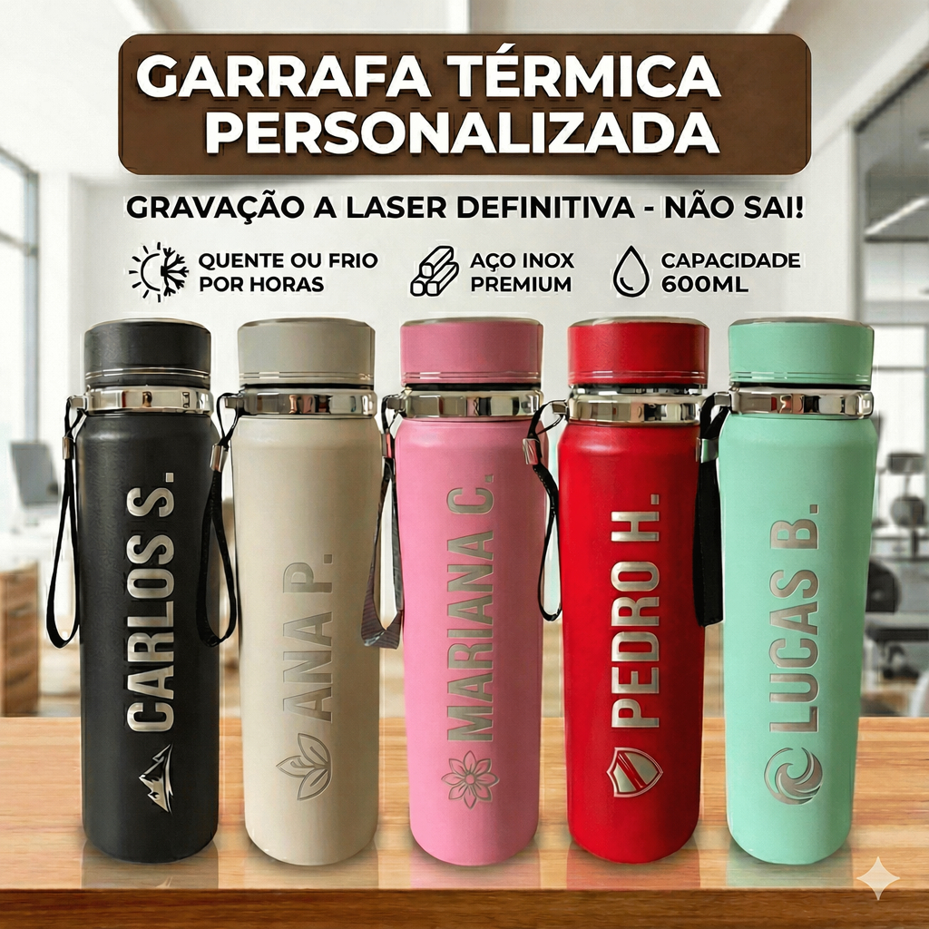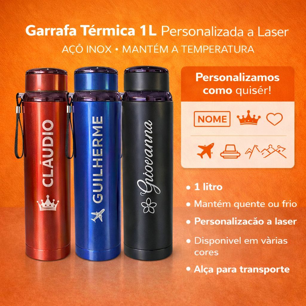 Garrafa Térmica Inox 1L / 600ML com alça Personalizada Com Nome Logo Time