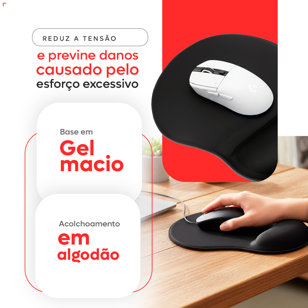 Mouse pad ergonômico em gel e tecido 22 x 19 cm Maior conforto Previne lesões