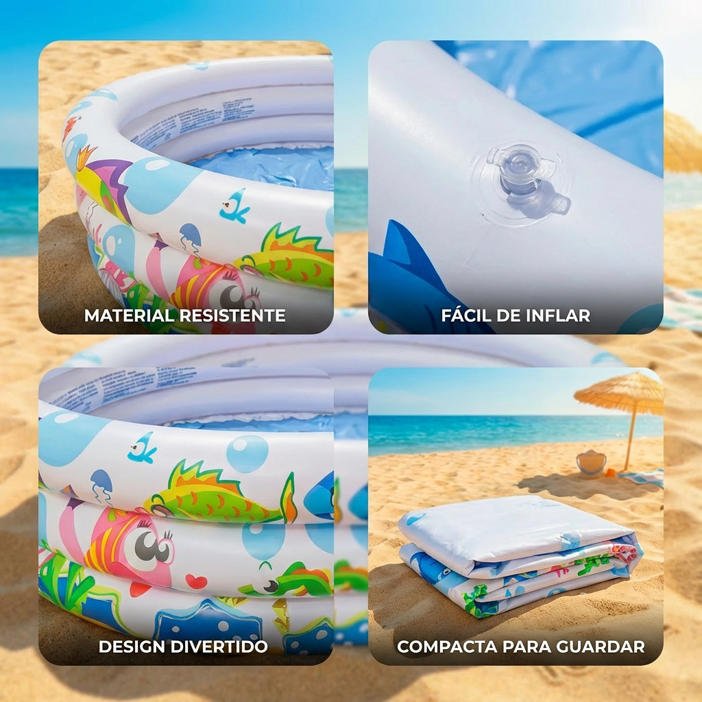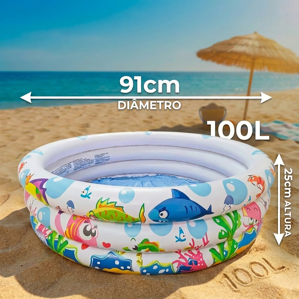 Piscina Infantil 100L/180L Redonda Inflável Àgua e Bolinhas Fundo do Mar