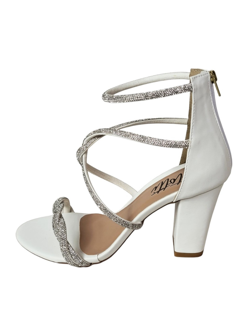 Sandália Branca Salto Grosso Bellatotti Tiziana di Strass