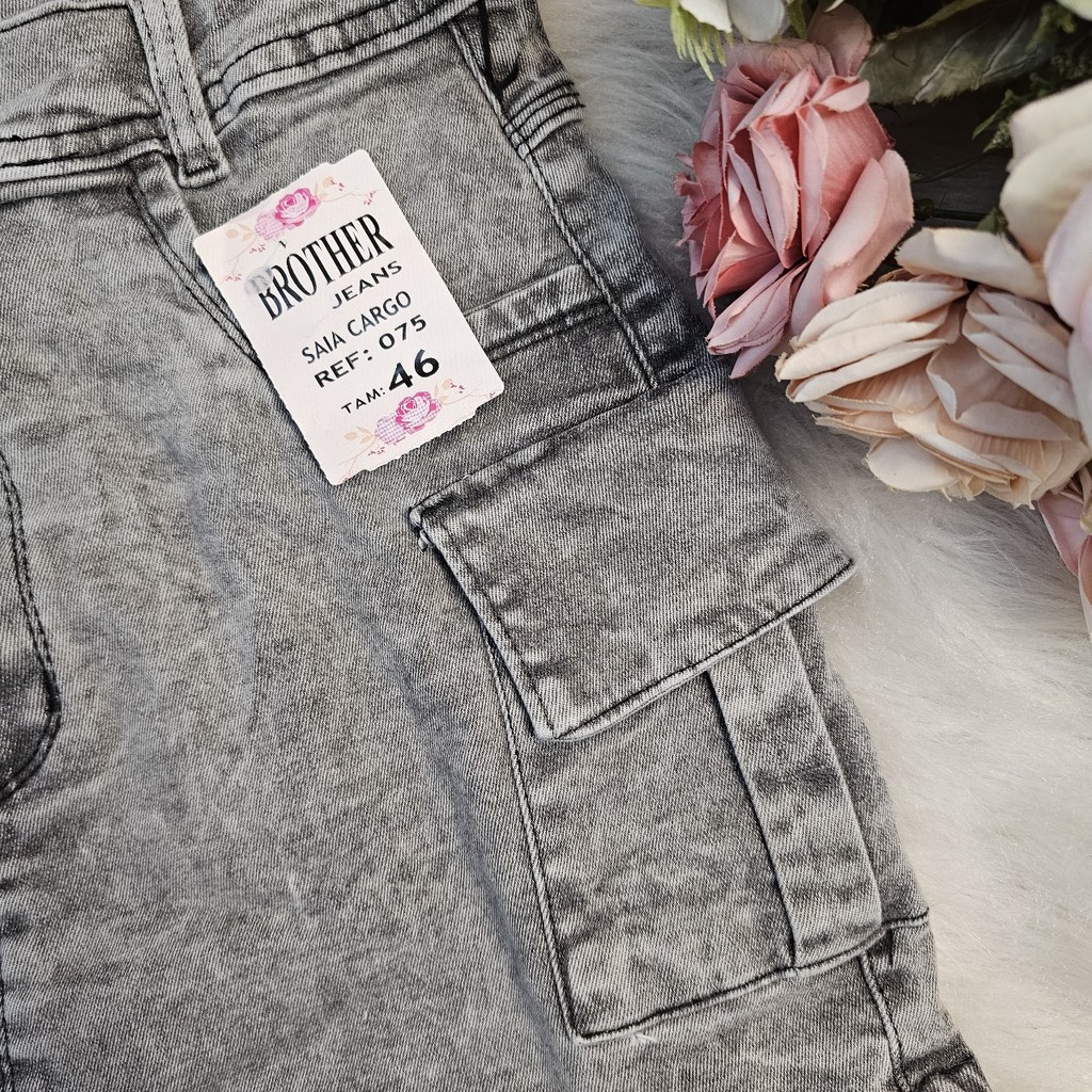 Saia jeans feminino 34 a 46 branco cargo cintura alta com lycra curto