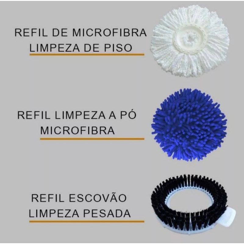Cabo Com 3 tipos de Refil Para mop balde Esfregão Giratório