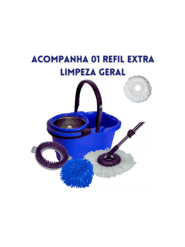 Balde Mop Esfregao Cesto Removível Inox Cabo 1,60 metros 4 Refis Pro Original