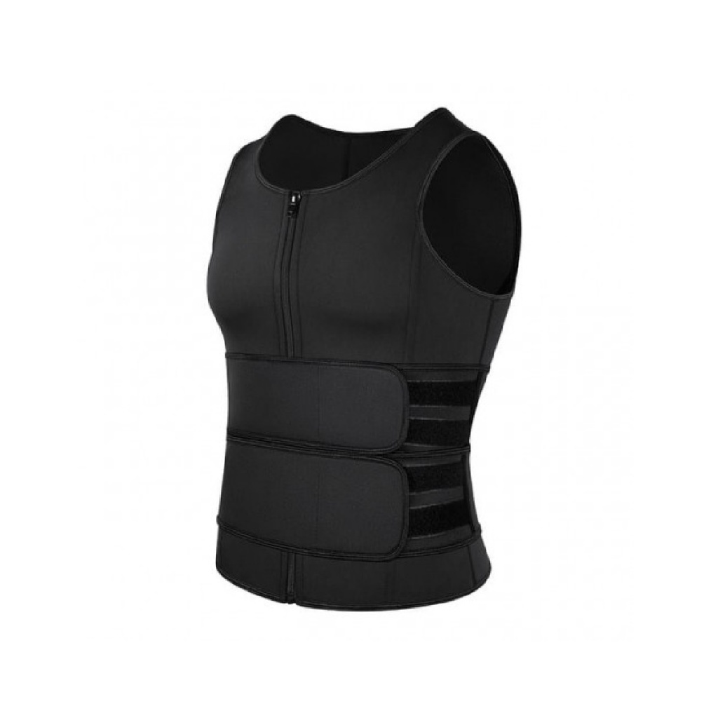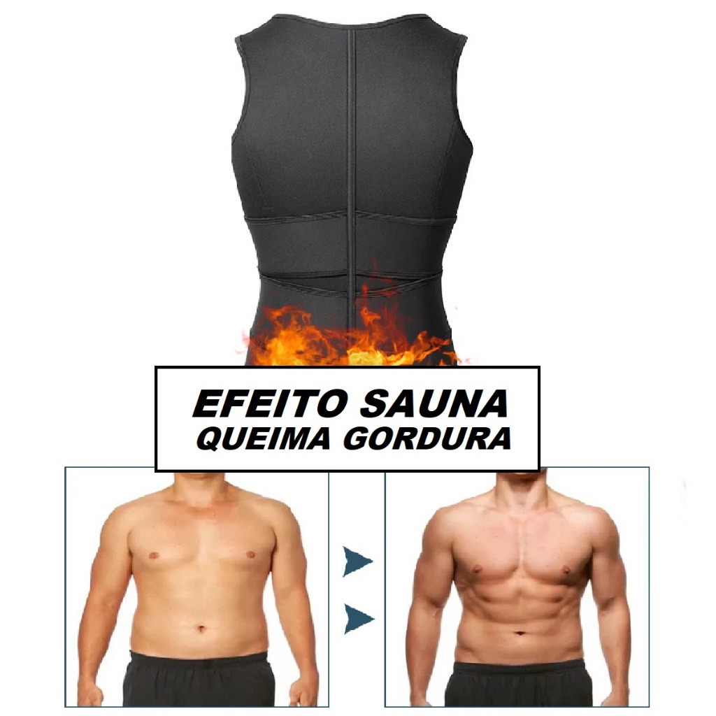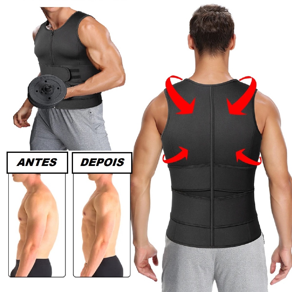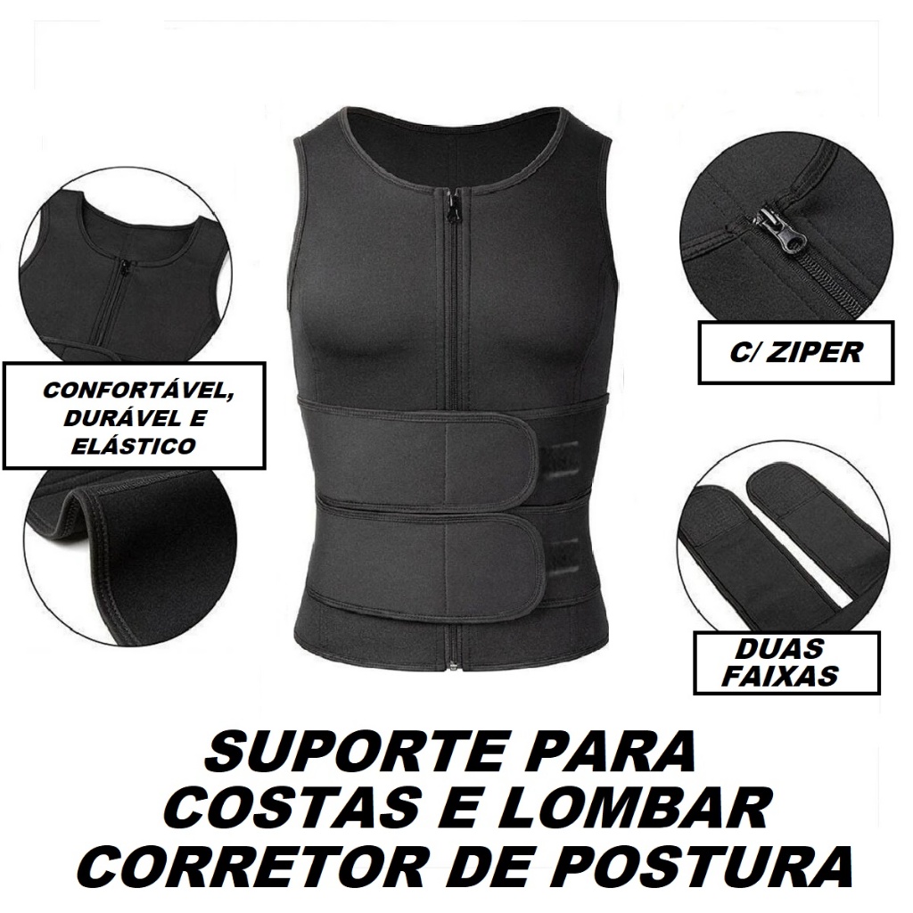 Cinta de Compressão Masculino Colete Ultraforte Duas Faixas com Zíper para Costas e Lombar Efeito Sauna Queima Gordura
