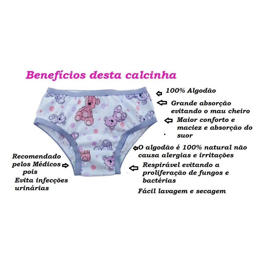 Kit 6 Calcinhas Infantil Crianças Meninas estampas e cores variadas
