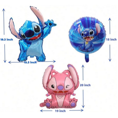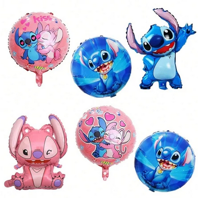 6 Pcs Stitch Balões De Festa De Aniversário , Folha De Desenho Animado Festas Decorações Ponto Azul E Rosa , De Volta Às