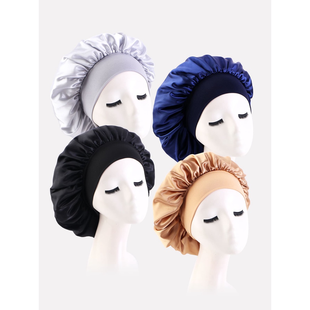 6 Peças Touca De Dormir De Cetim De Aba Larga Multicolorida Para Mulheres, Adequada Para Uso Diário