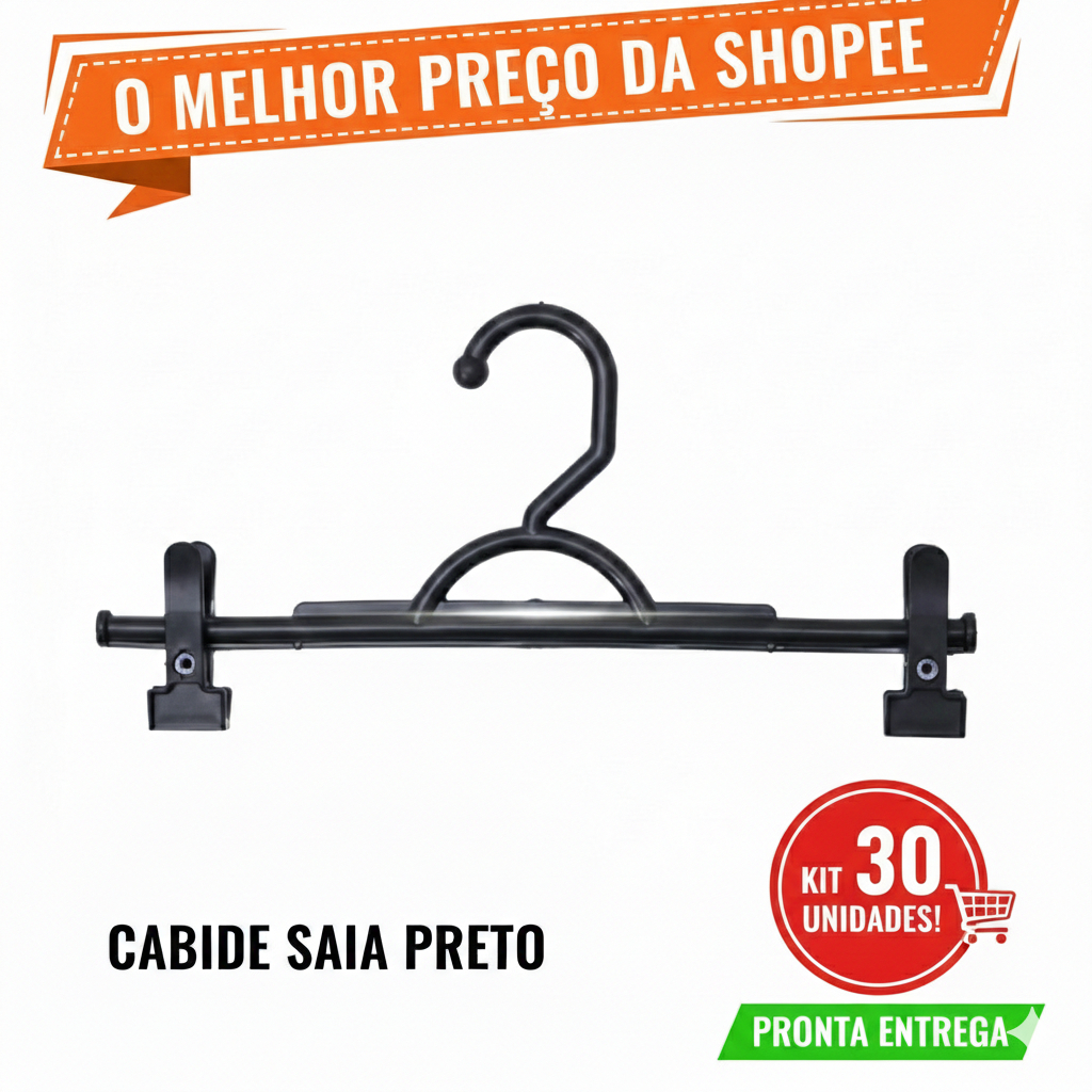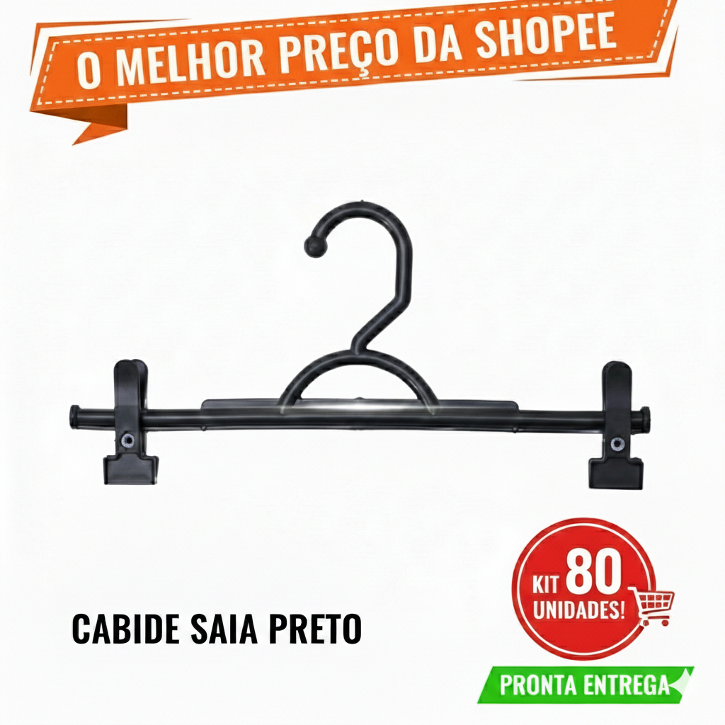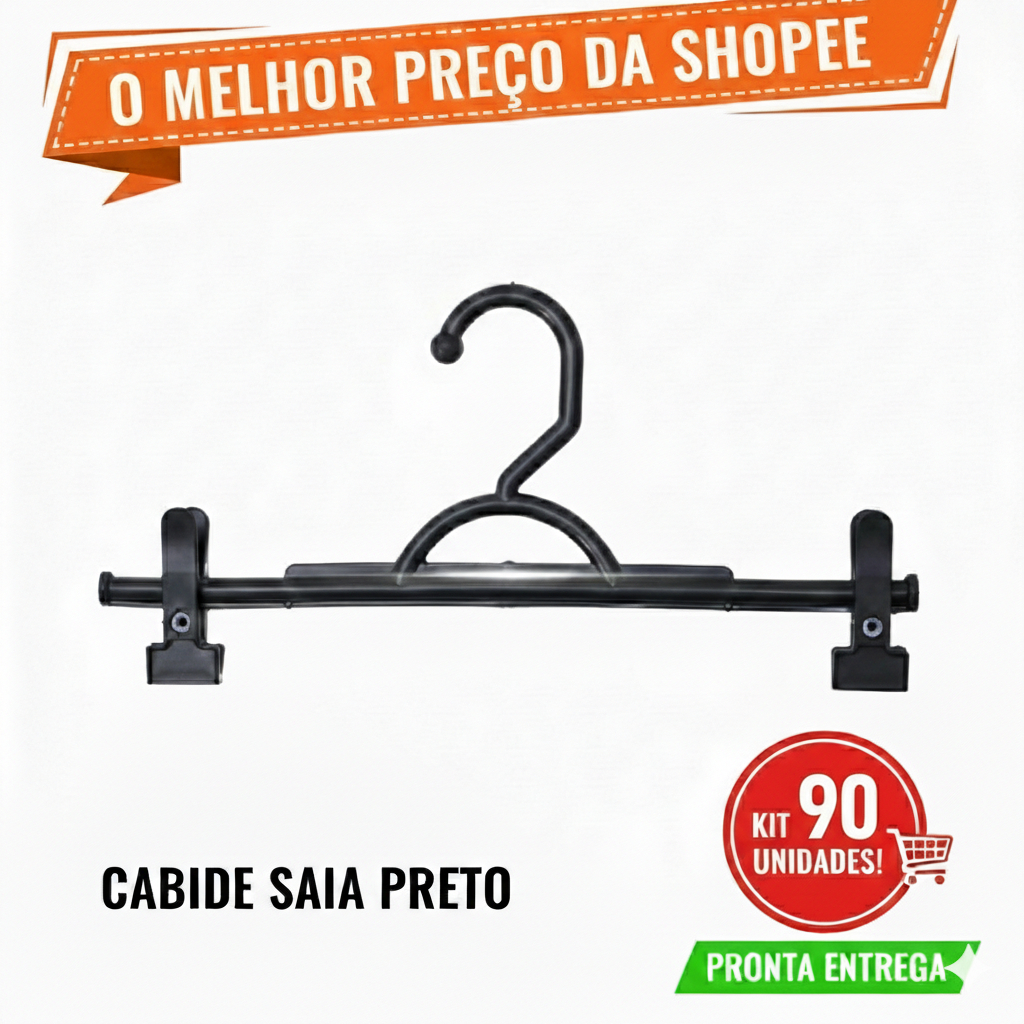 Kit 20 30 40 50 60 70 80 90 100 Cabides Preto Plástico Calça Bermuda Saia Shorts C/ Presilhas