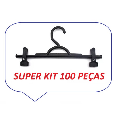 Kit 50 100 Cabides Preto Plástico C/ Presilhas