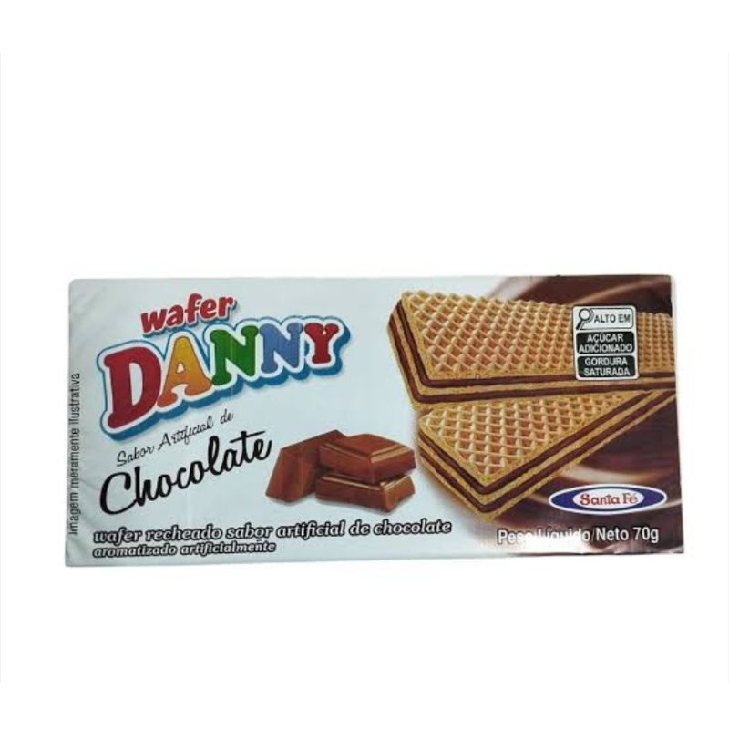 kit 10 Bolachas Wafer Danny Morango ou Chocolate 70grs