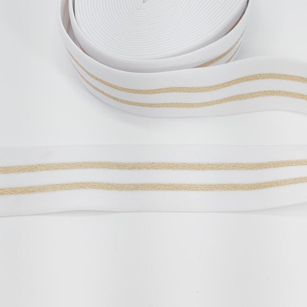 Elástico Madri 40mm Branco Lurex Leve Defeito ou Segunda Linha - Pode ter emendas para cós - 3836
