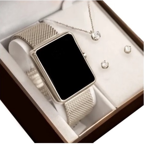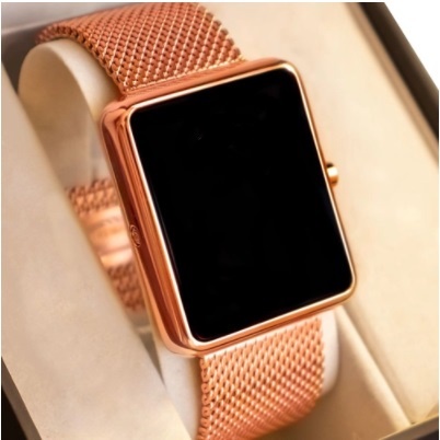 Relógio Feminino Unissex digital Led Quadrado Sports Watch Tendência Moda Dourado Rose 566