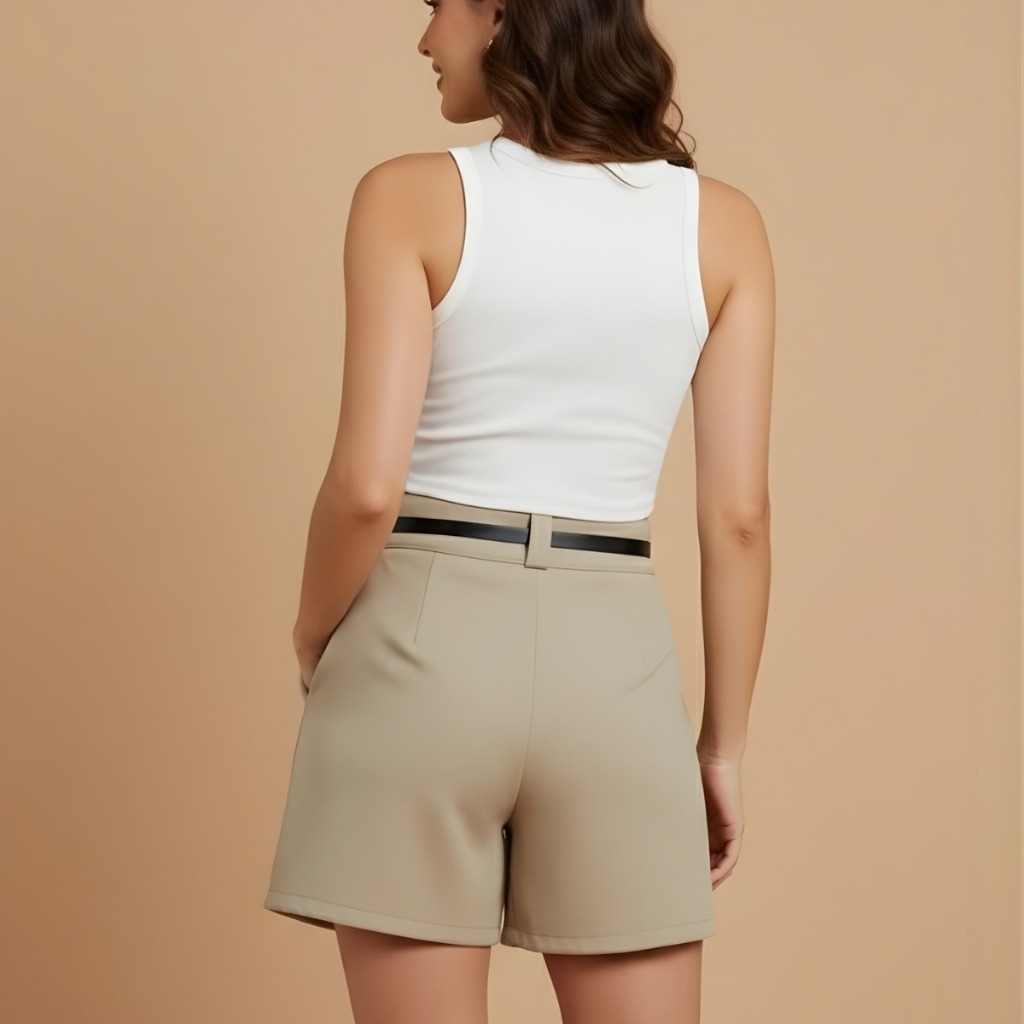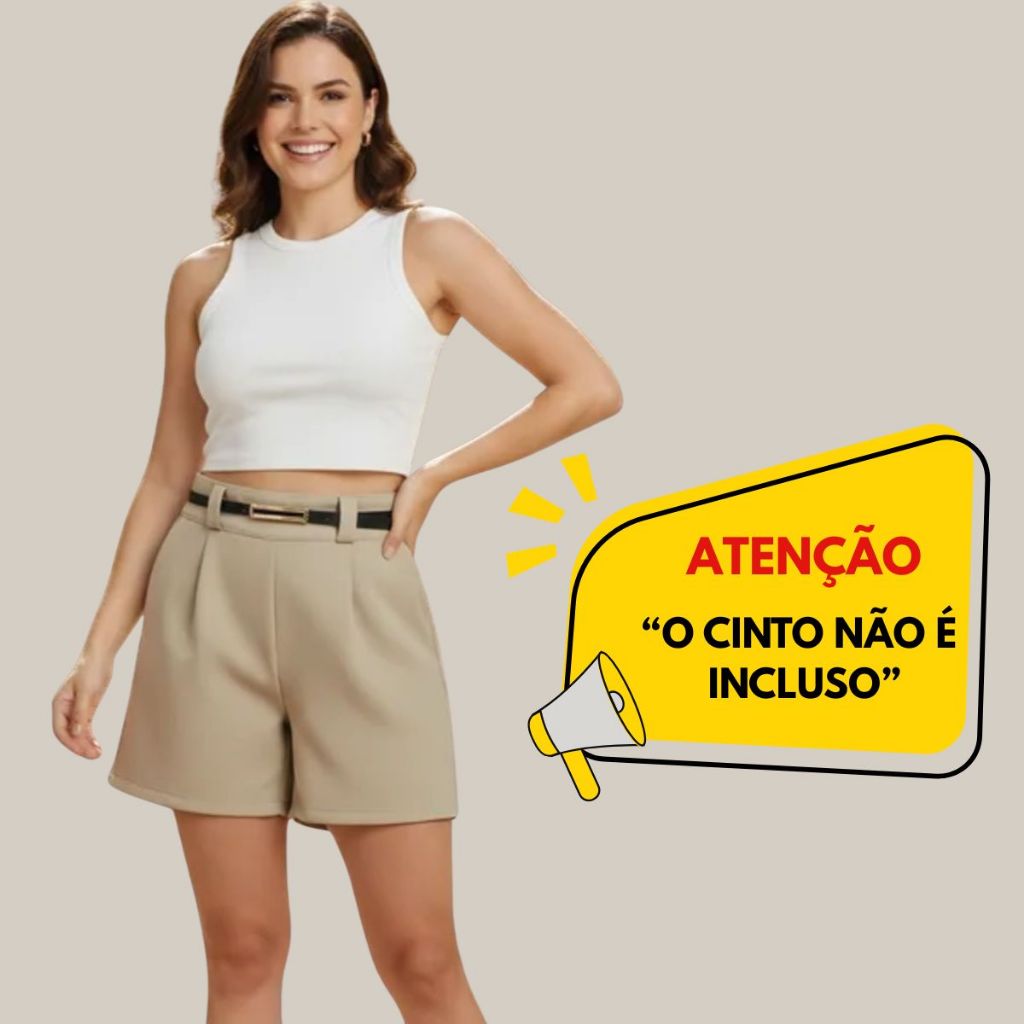 Short Feminino Alfaiataria Com Bolsos Laterais Casual Elegante