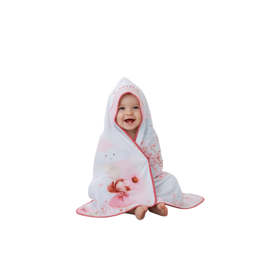 Toalha de banho para bebê personalizada bordada com nome no capuz com forro fralda 100% algodão