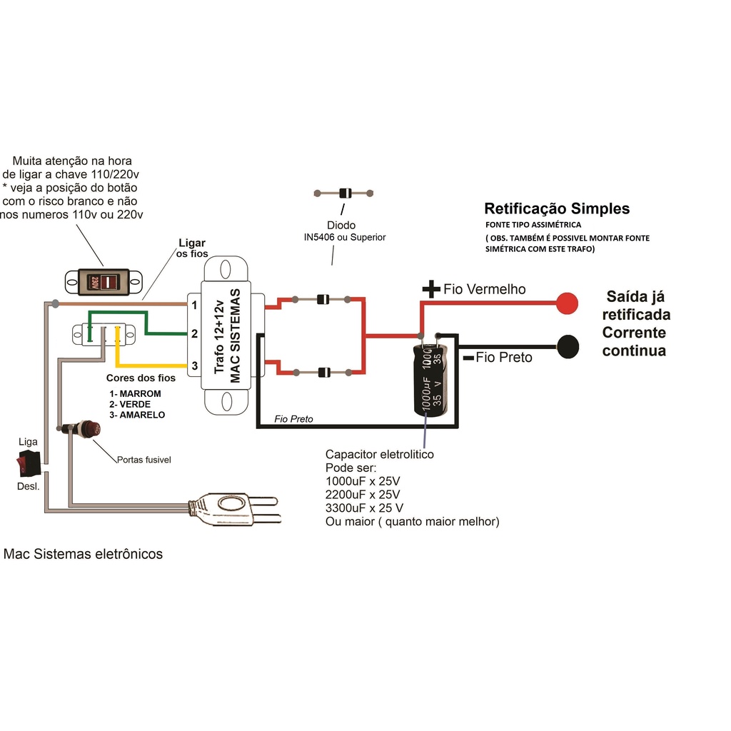 Transformador Trafo 12v 0 12v 2a - 12+12v 110/220v 3 Fios
