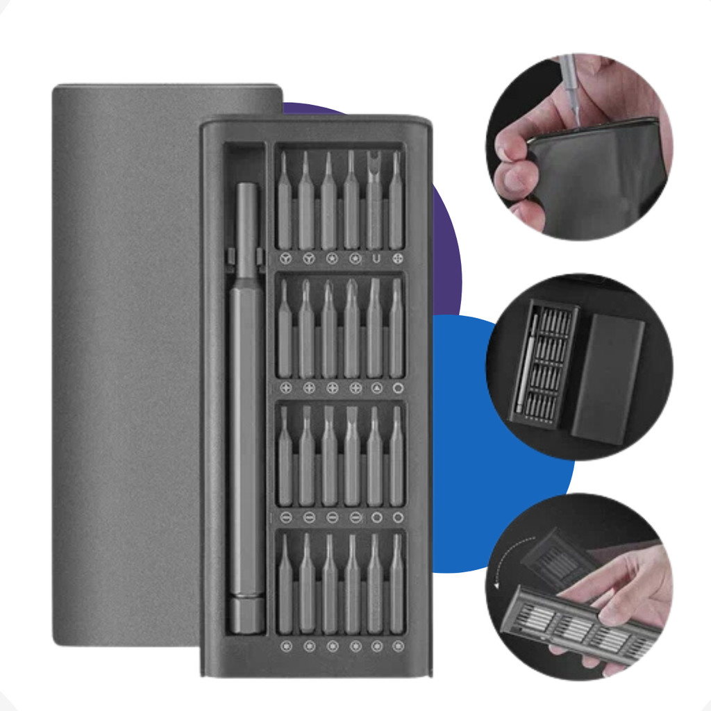 KIT Jogo Ferramenta Chave Magnética Precisão Pequenos 24 Peças Reparos Compatível - Celular Notebook