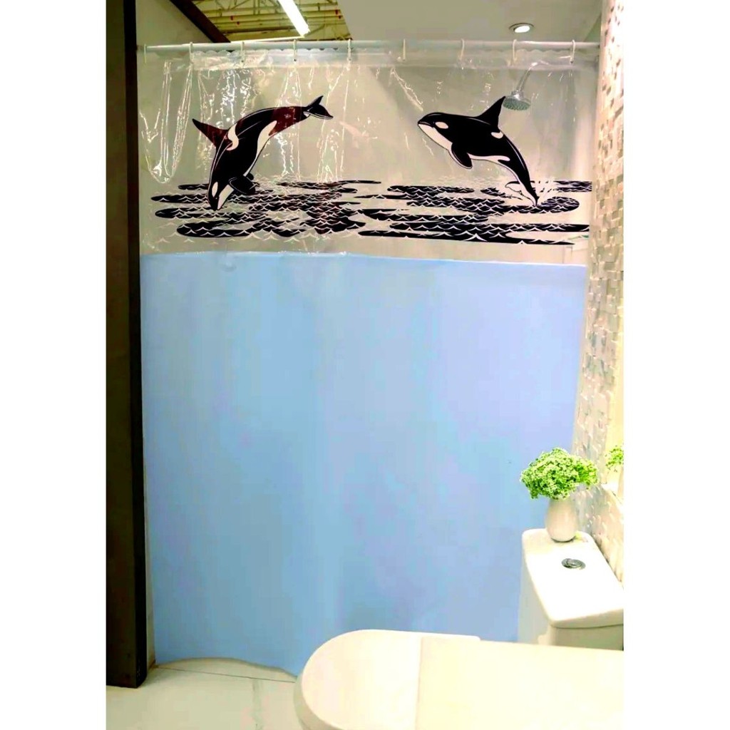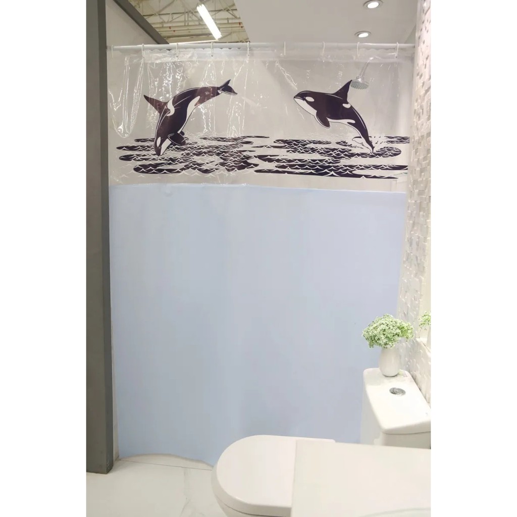 Cortina Para Box De Banheiro Com Visor transparente estampa baleia