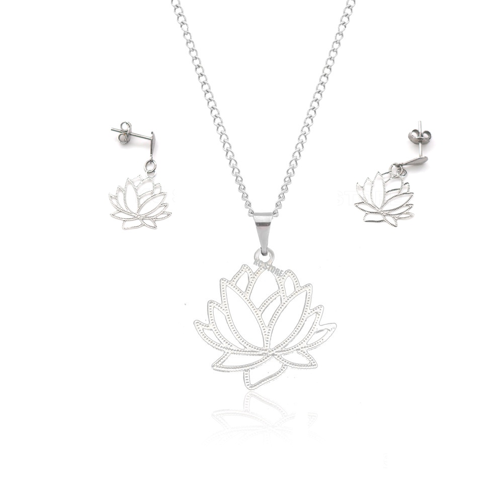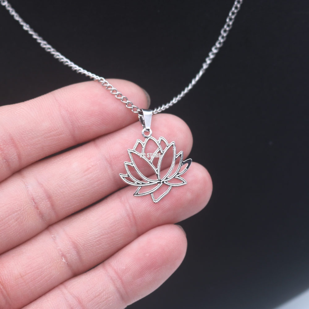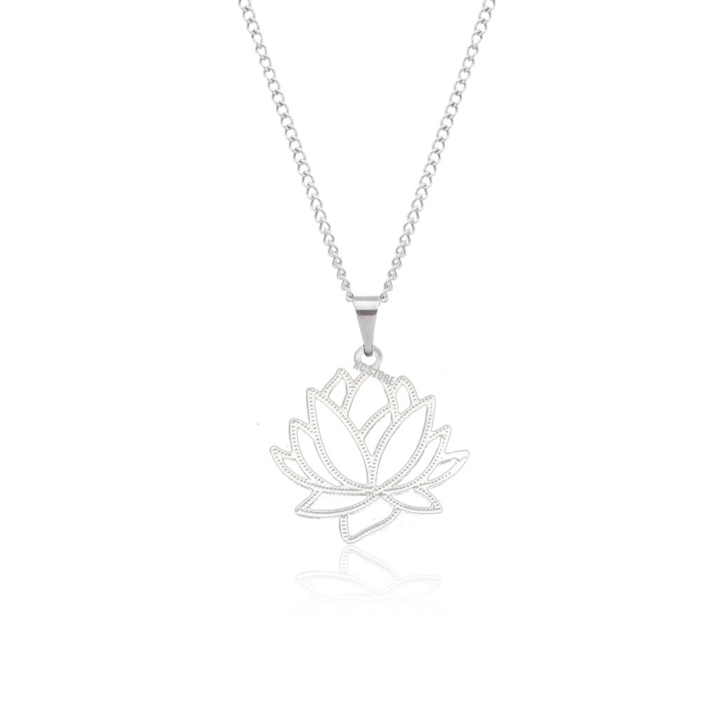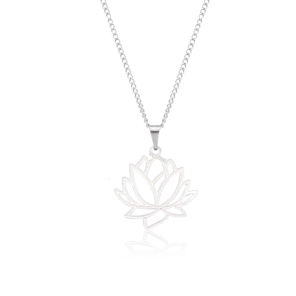 Binco Ou Colar Corrente Flor De Lótus em aço inox simbolismo budista unissex estilo gargantilha choker om yinyang