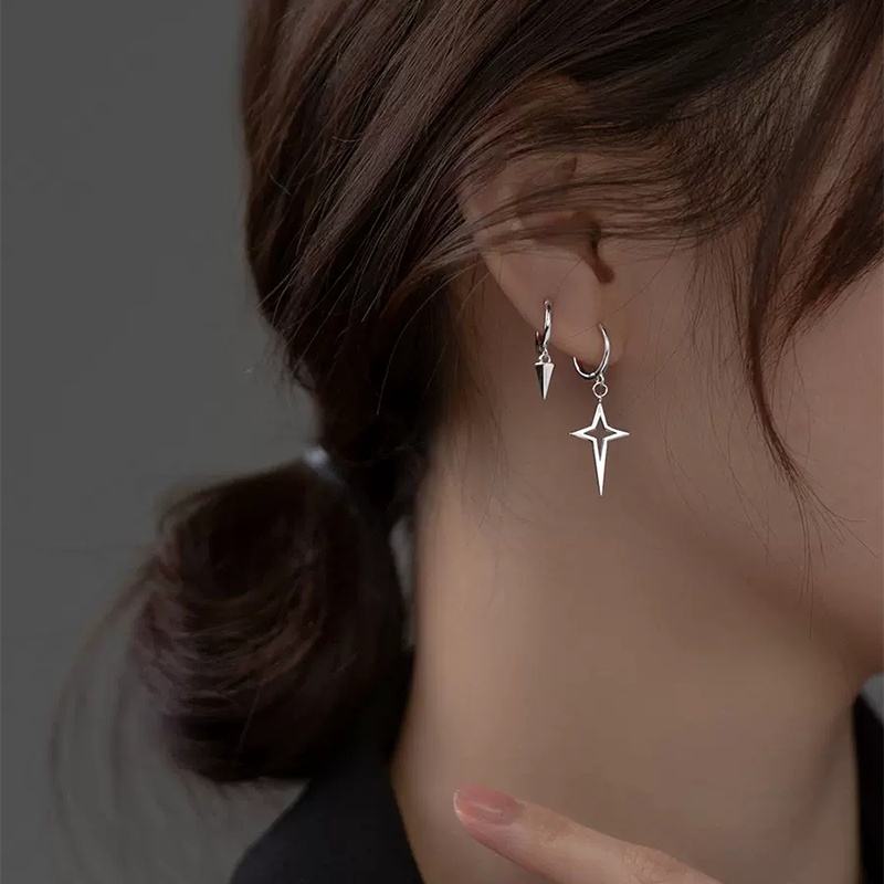 Par Brinco De Cruz Brincos Assimétricos Star Cool brinco Geometria Cônica Hip hop Ear Stud funk Cone