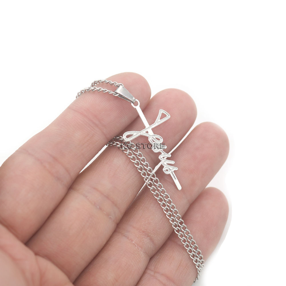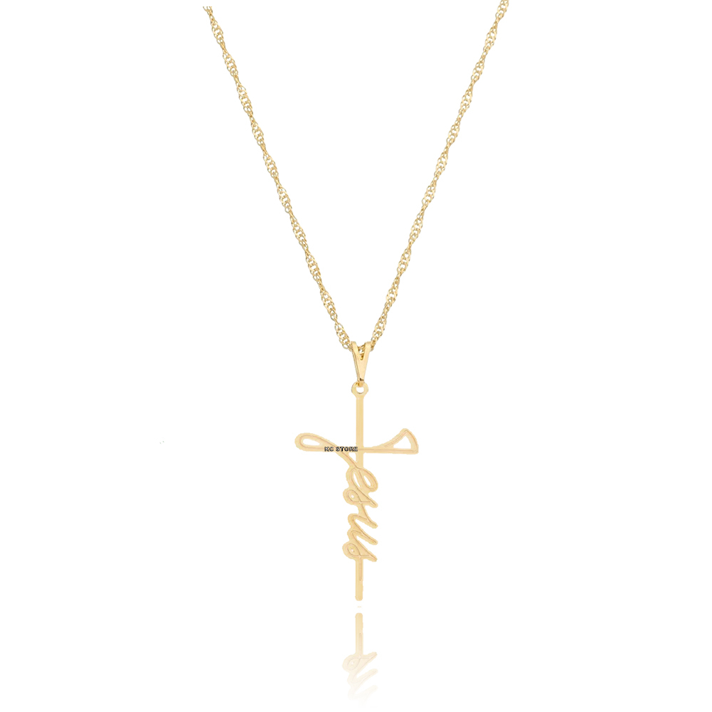 Colar Masculino feminino Cruz Nome Jesus Cristo crucifixo em aço Inox prata Dourado Folheado gargantilha
