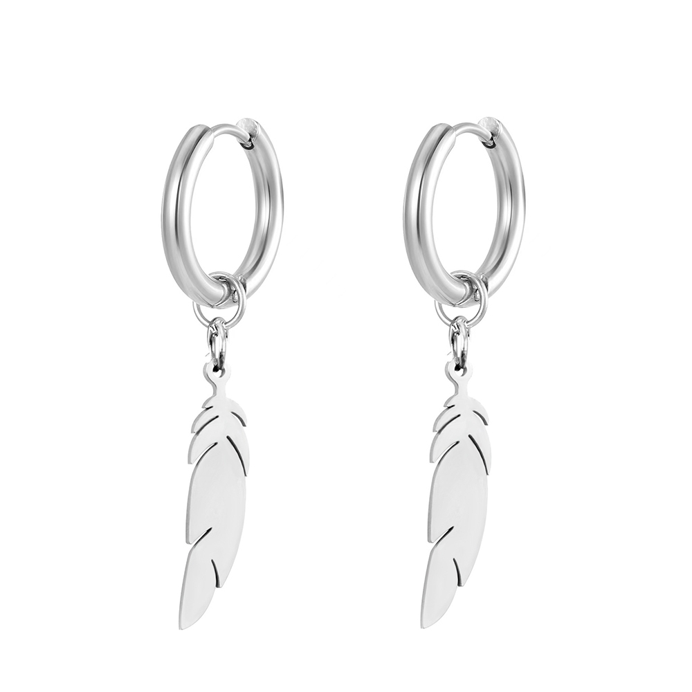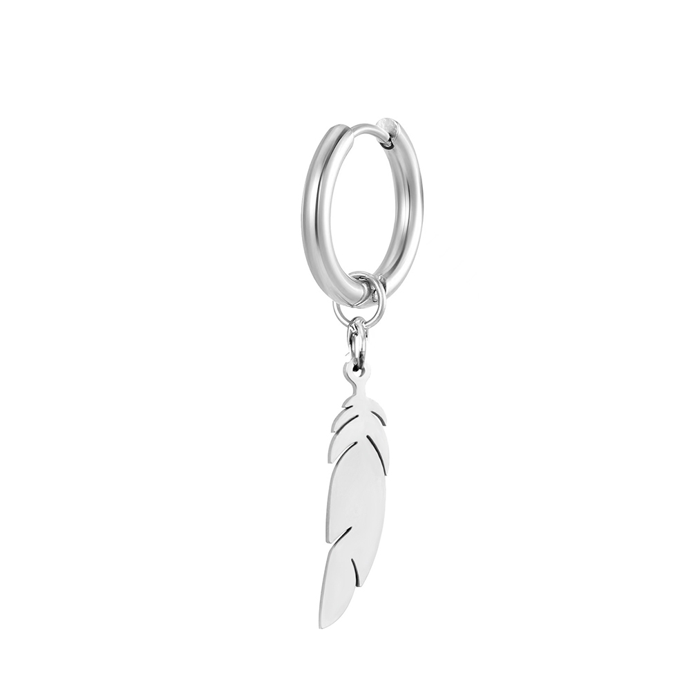 Colar de pena brinco de penas não escurece em aço inox prateado prata antialérgico brincos argola gargantilha masculino feminino funk