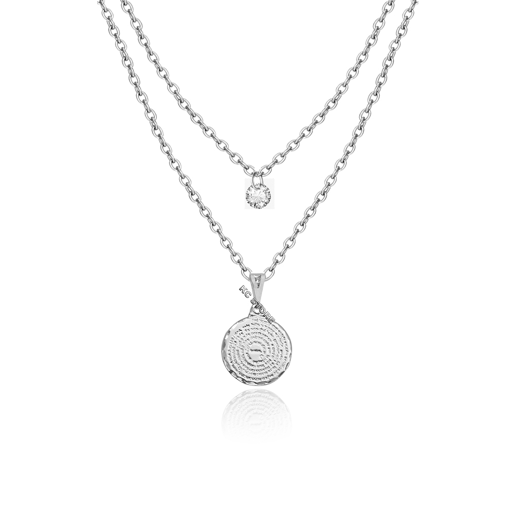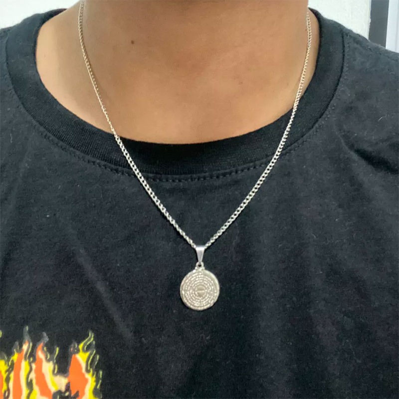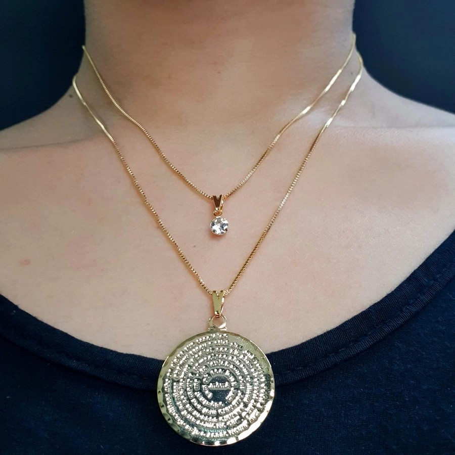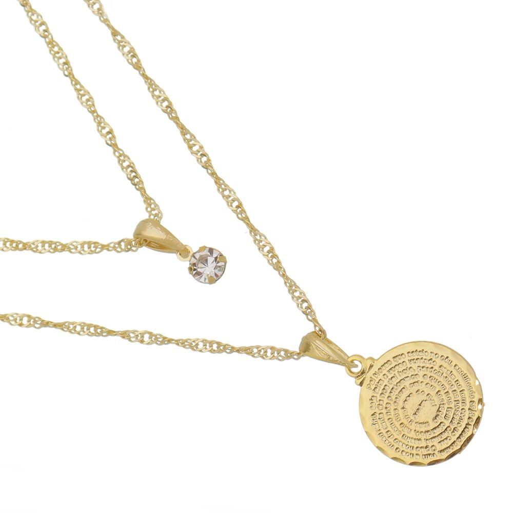 Colar Duplo Feminino pai nosso maior menor folheado dourado aço inox prata corrente ponto de luz