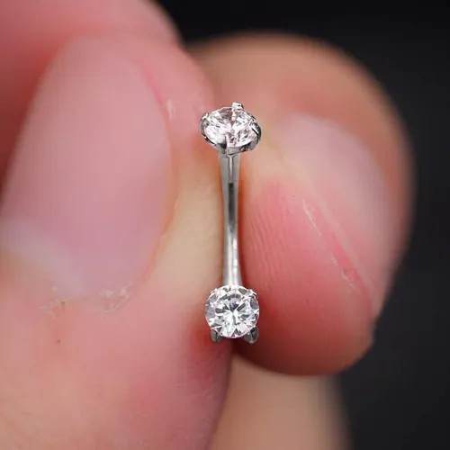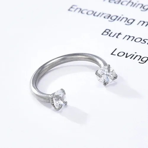 Piercing Banana 8mm Rook Aço pedra Zircônias Nas Duas Pontas curvo ponto de luz prata prateado