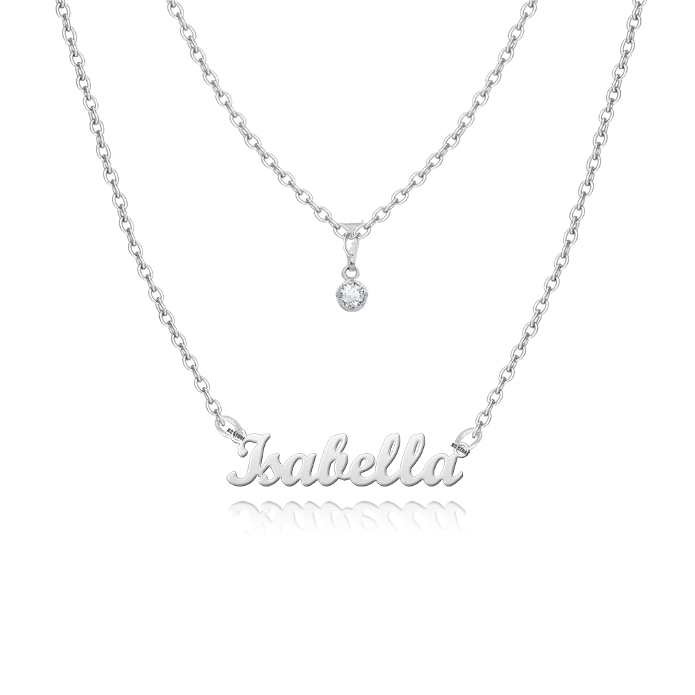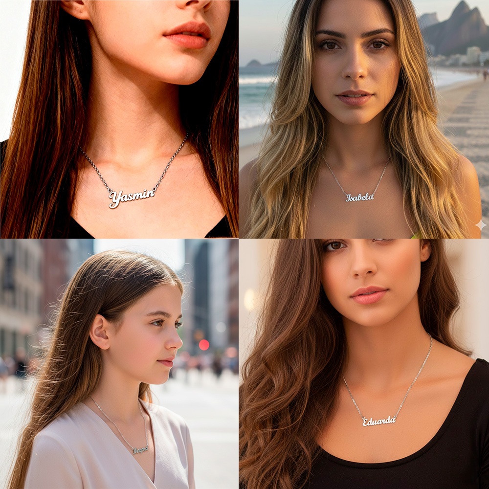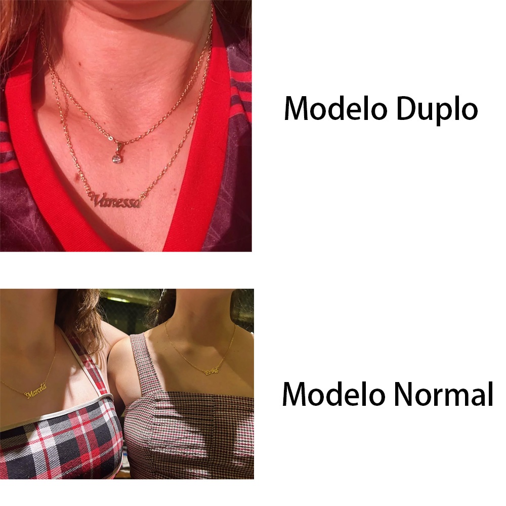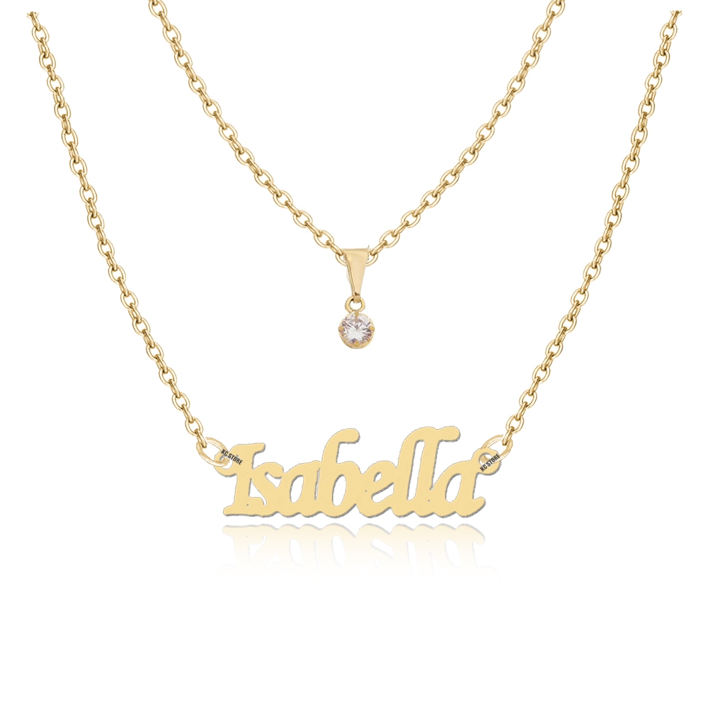 colar corrente feminino de nome Isabella folheado a ouro luxo muito lindo folheado dourado cor aço prata prateada duplo