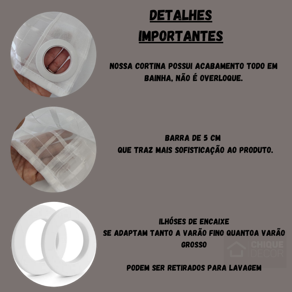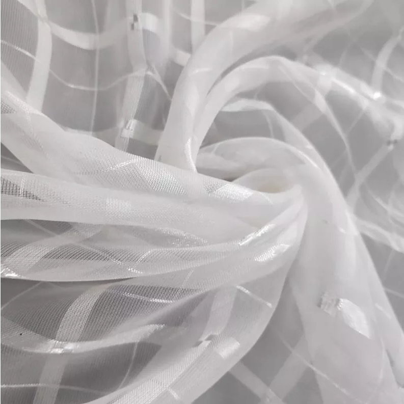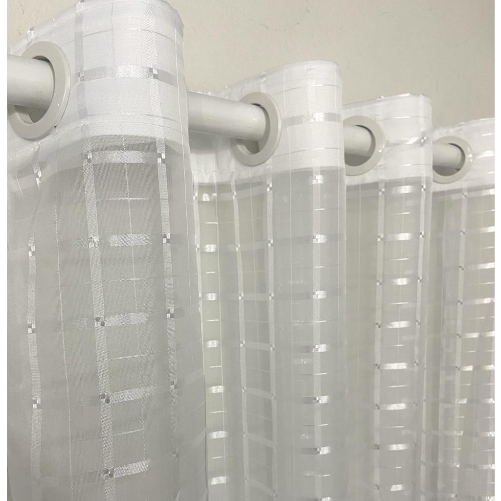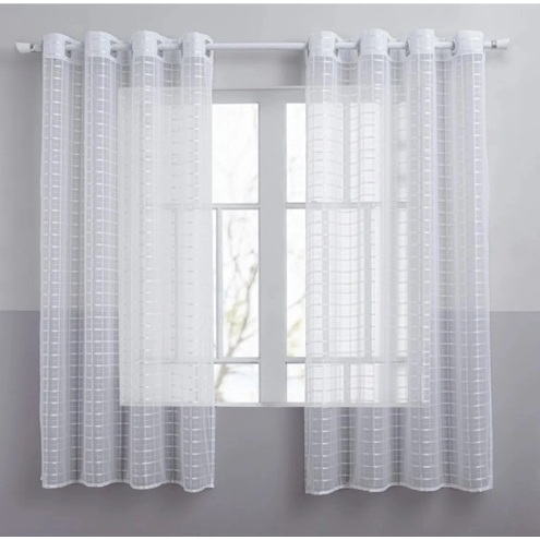 Cortina Sala Quarto Cozinha Tecido Voil Xadrez Transparente 2,20 m x 1,40 m