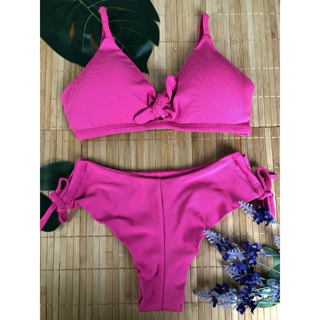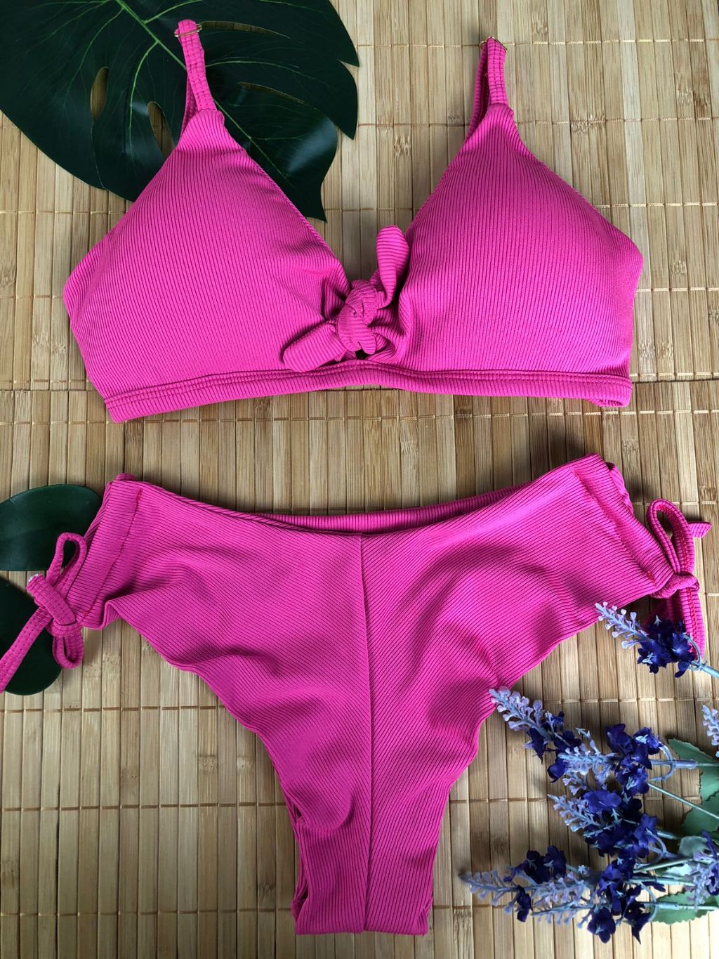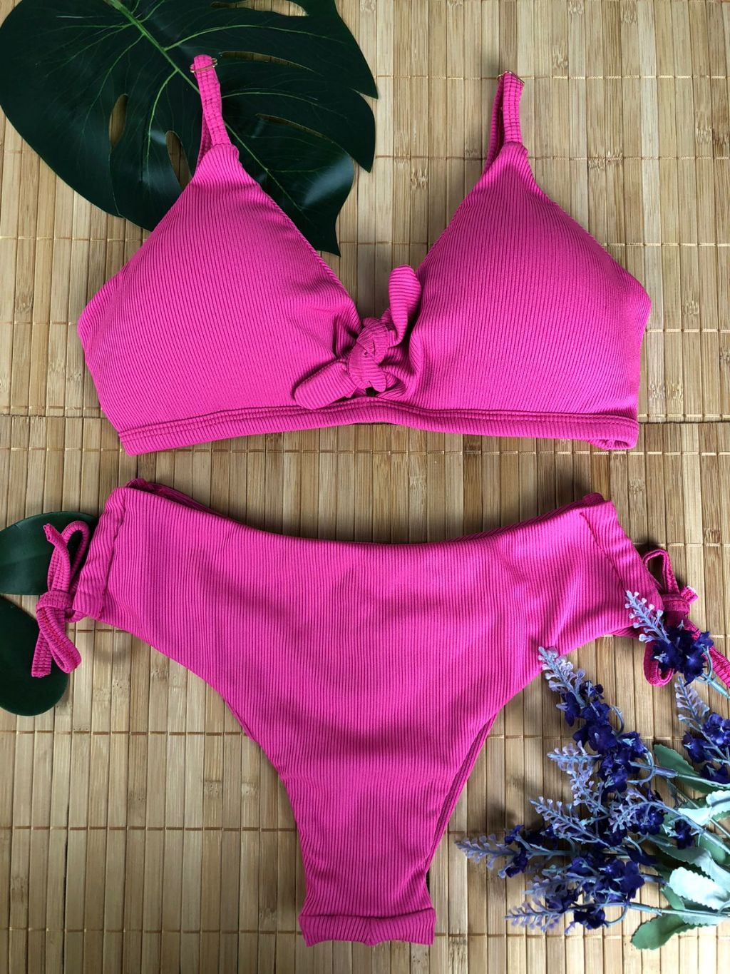 Plus Size Biquini Com Regulador Alças Calcinha Fio Duplo De Amarrar com Bojo Removível Estilo Sutiã