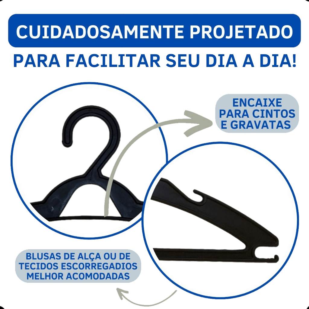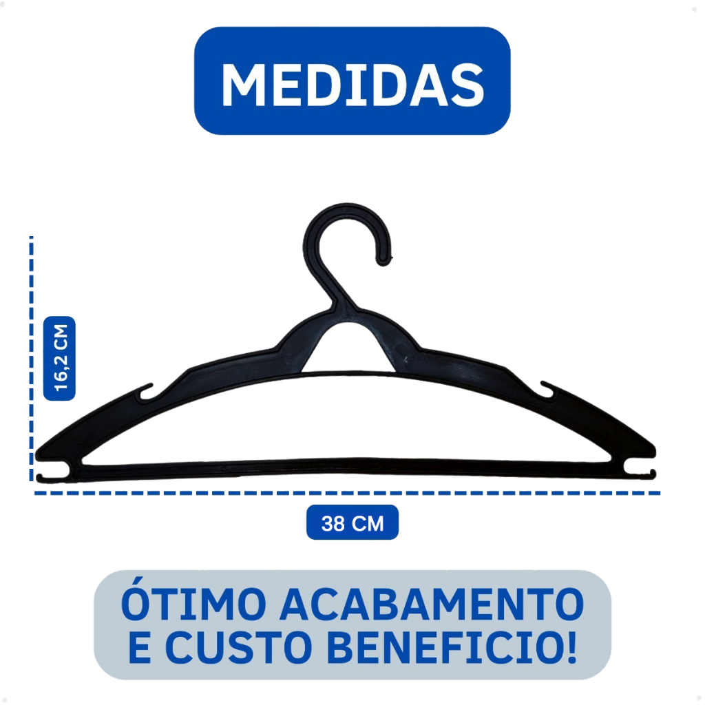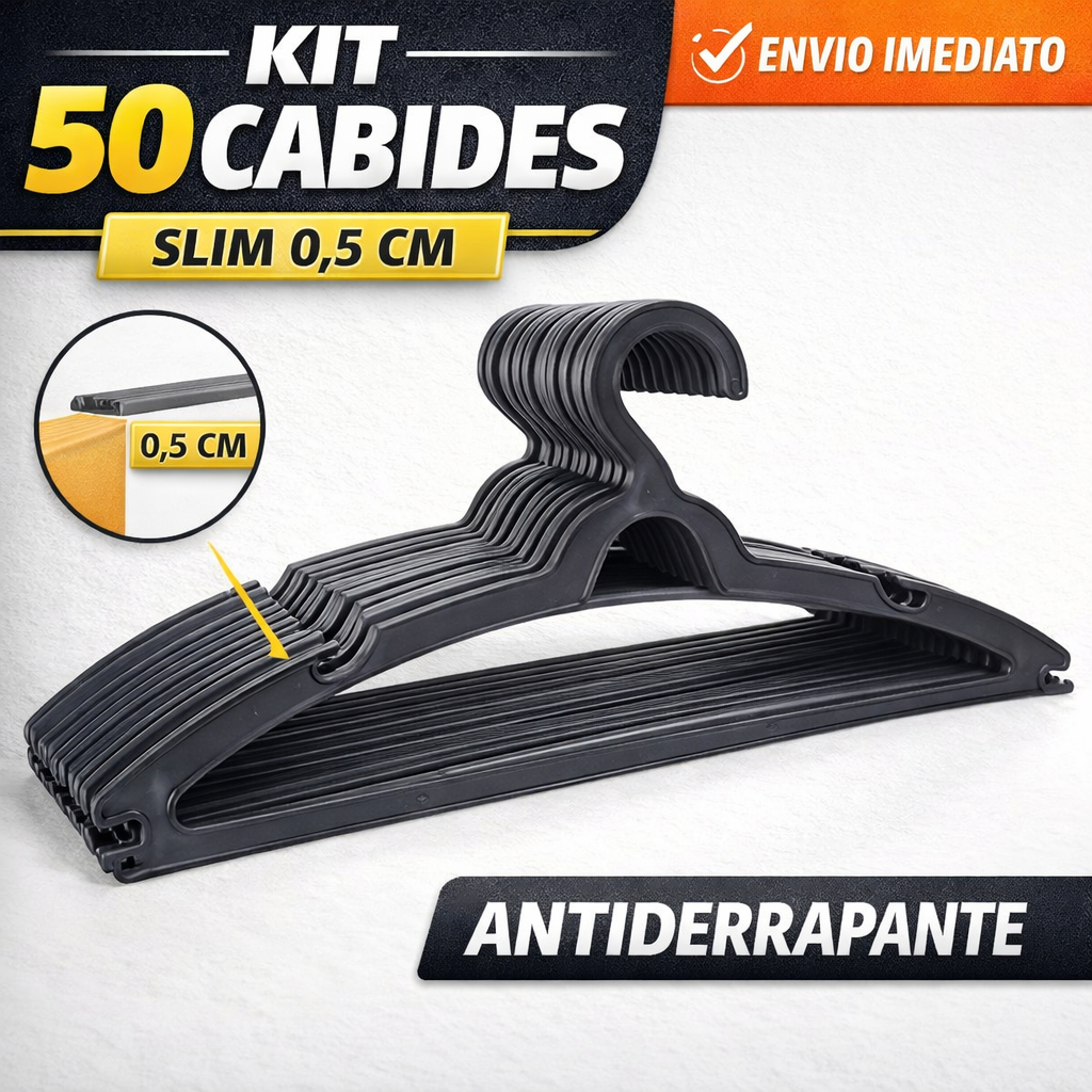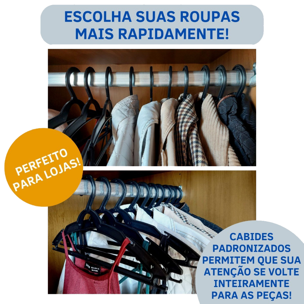 Kit 50 Cabides de Roupa Adulto 40cm antideslizante - Envio imediato