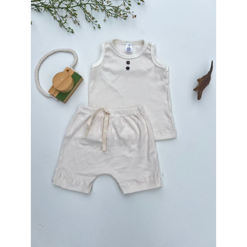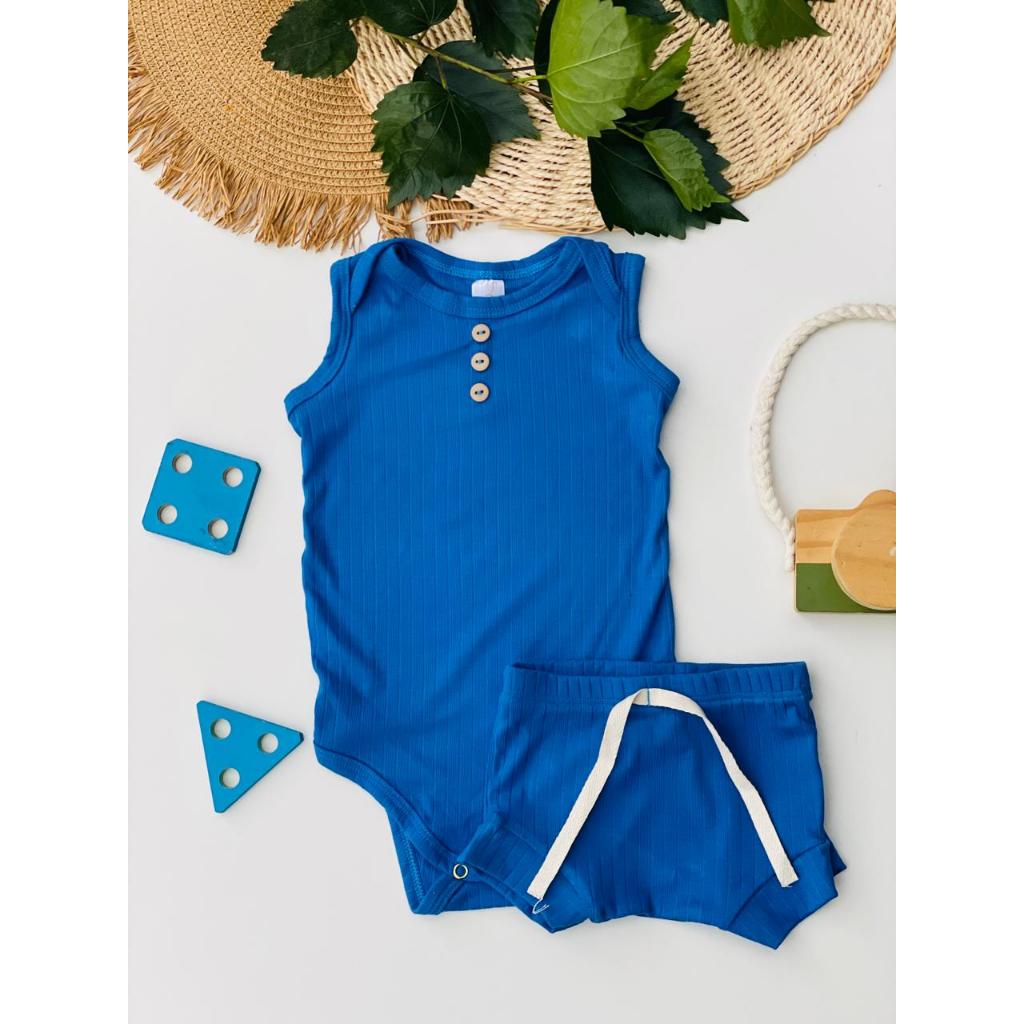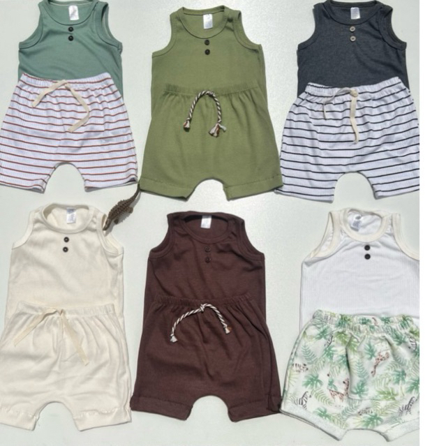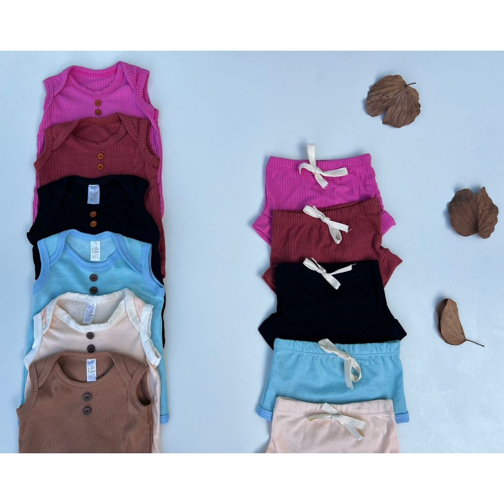 Kit 6 Peças DAVI Conjunto Menino Minimalista Verão Regata Bermuda Conforto Infantil Bebê Algodão Canelado