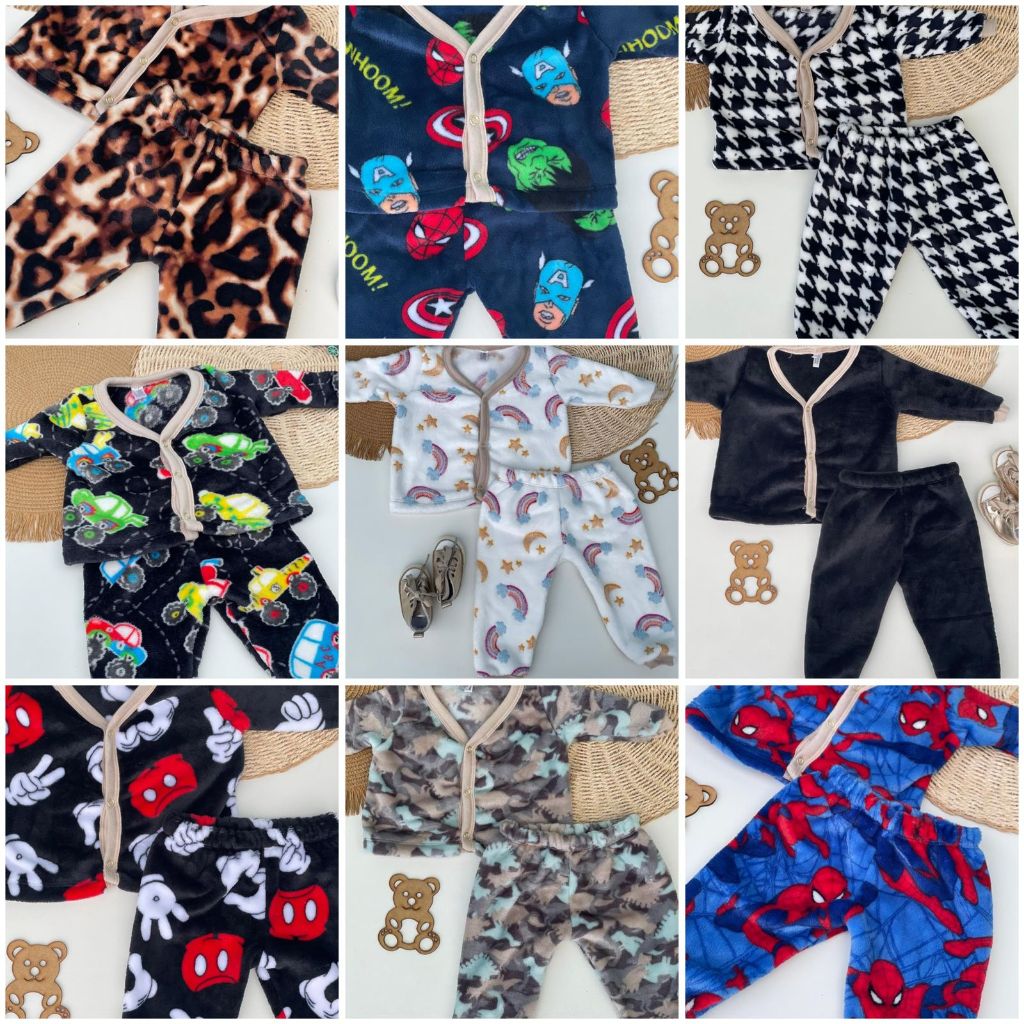 conjunto fleece e Soft inverno Menina Menino casaco calça super quentinho bebê